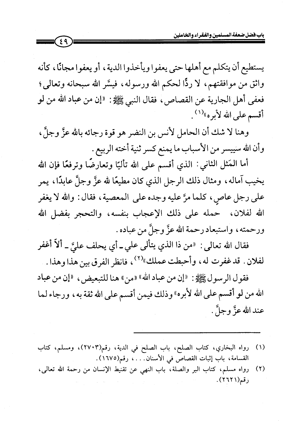 يستطيع أن يتكلم مع أهلها حتى يعفوا ويأخذوا الدية، أو يعفوا مجاناً، كأنه واثق من موافقتهم، لا رداً لحكم الله ورسوله، فيسر الله سبحانه وتعالى؛ فعفى أهل الجارية عن القصاص، فقال النبي صلى الله عليه وسلم: ((إن من عباد الله من لو أقسم على الله لأبره)) .