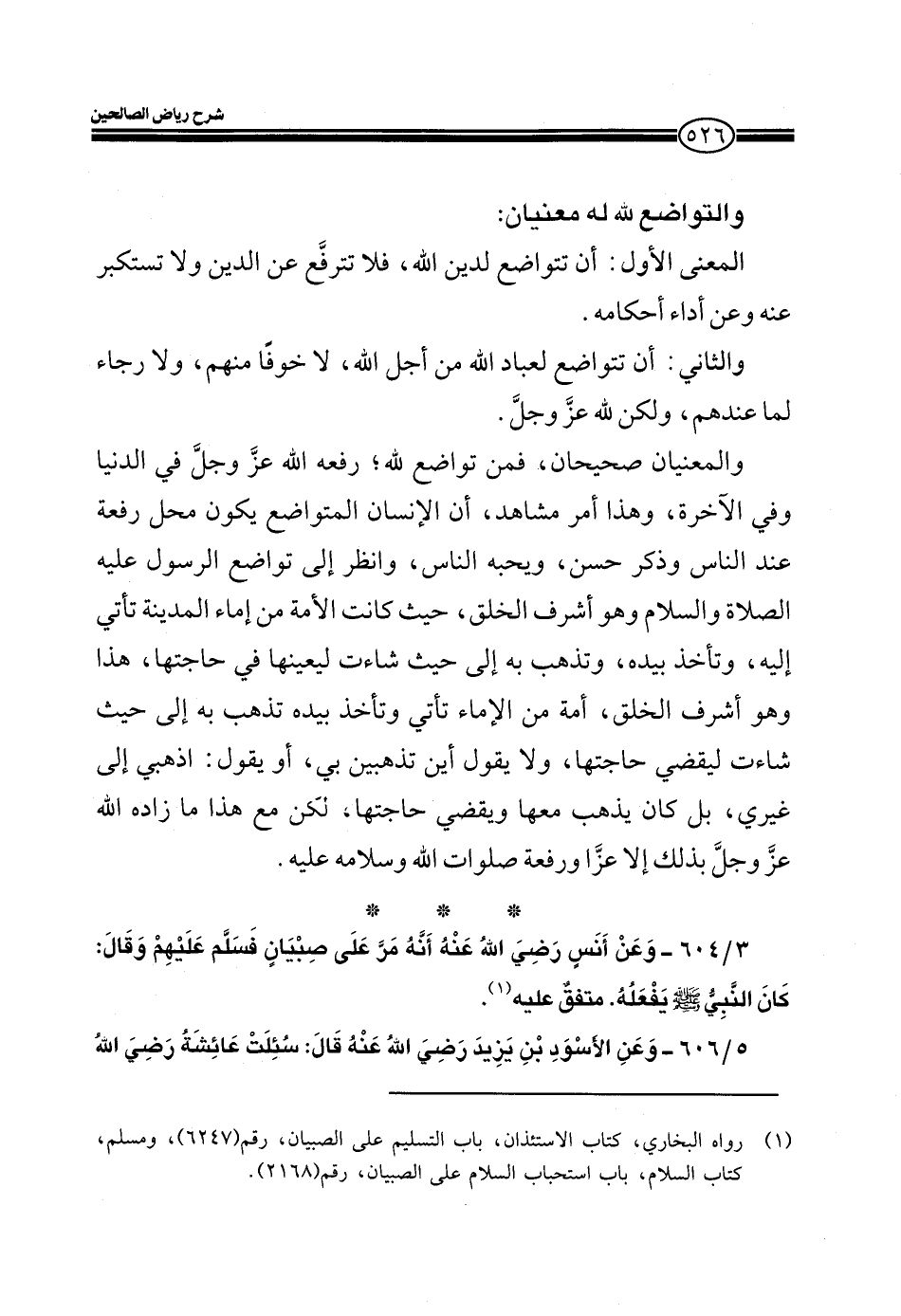 والمعنيان صحيحان، فمن تواضع لله؛ رفعه الله عزّ وجلّ في الدنيا وفي الآخرة، وهذا أمر مشاهد، أن الإنسان المتواضع يكون محل رفعة عند الناس وذكر حسن، ويحبه الناس، وانظر إلى تواضع الرسول عليه الصلاة والسلام وهو أشرف الخلق، حيث كانت الأمة من إماء المدينة تأتي إليه، وتأخذ بيده، وتذهب به إلى حيث شاءت ليعينها في حاجتها، وهذا هو أشرف الخلق، أمة من الإماء تأتي وتأخذ بيده تذهب به إلى حيث شاءت ليقضى حاجتها، ولا يقول أين تذهبين بي، أو يقول: اذهبي إلى غيري، بل كان يذهب معها ويقضي حاجتها، لكن مع هذا ما زاده الله عز وجلّ بذلك إلا عزّاً ورفعة صلوات الله وسلامه عليه.