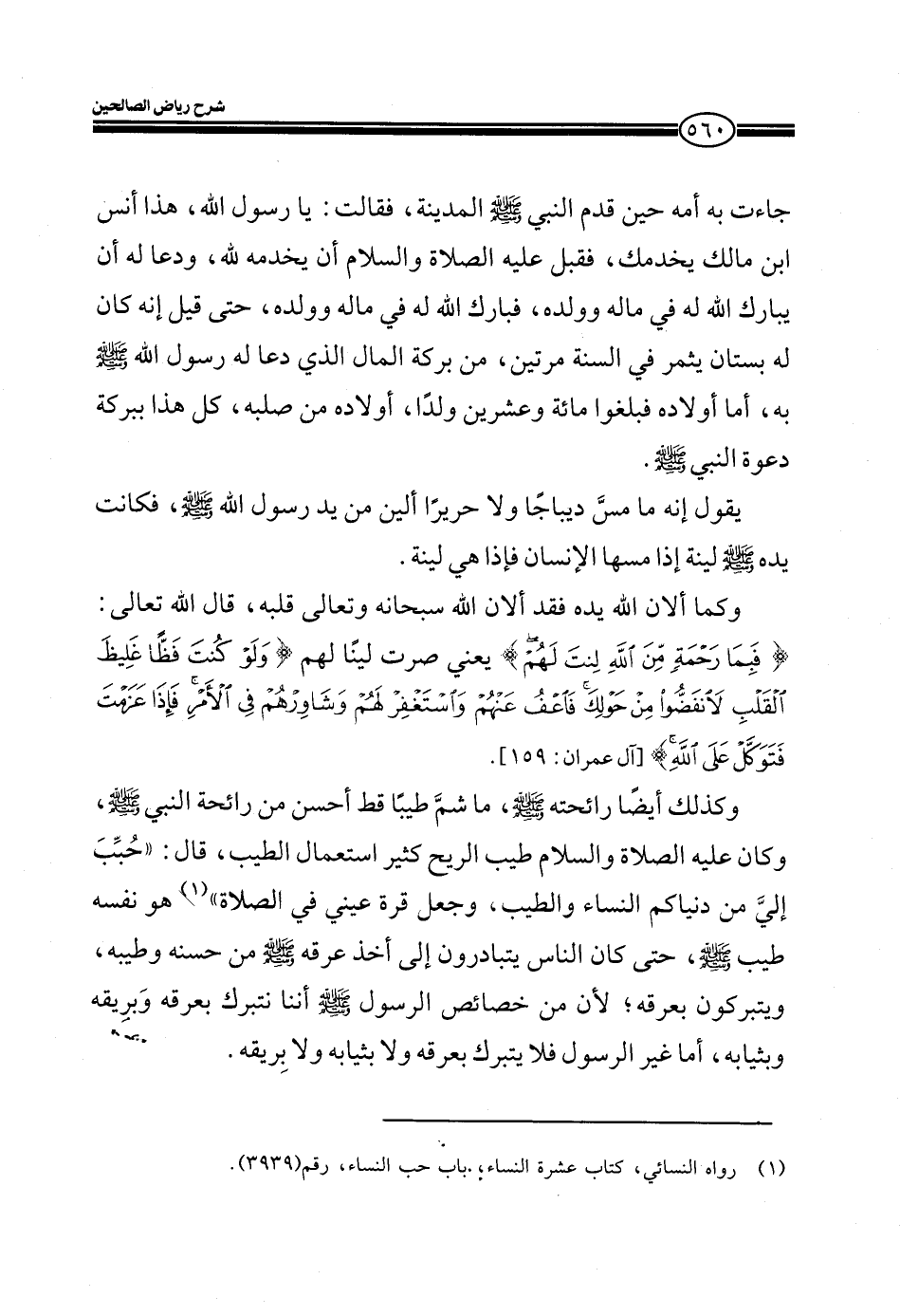 يقول إنه ما مس ديباجاً ولا حريراً ألين من يد رسول الله صلى الله عليه وسلم، فكانت يده صلى الله عليه وسلم لينة إذا مسها الإنسان فإذا هي لينة.
