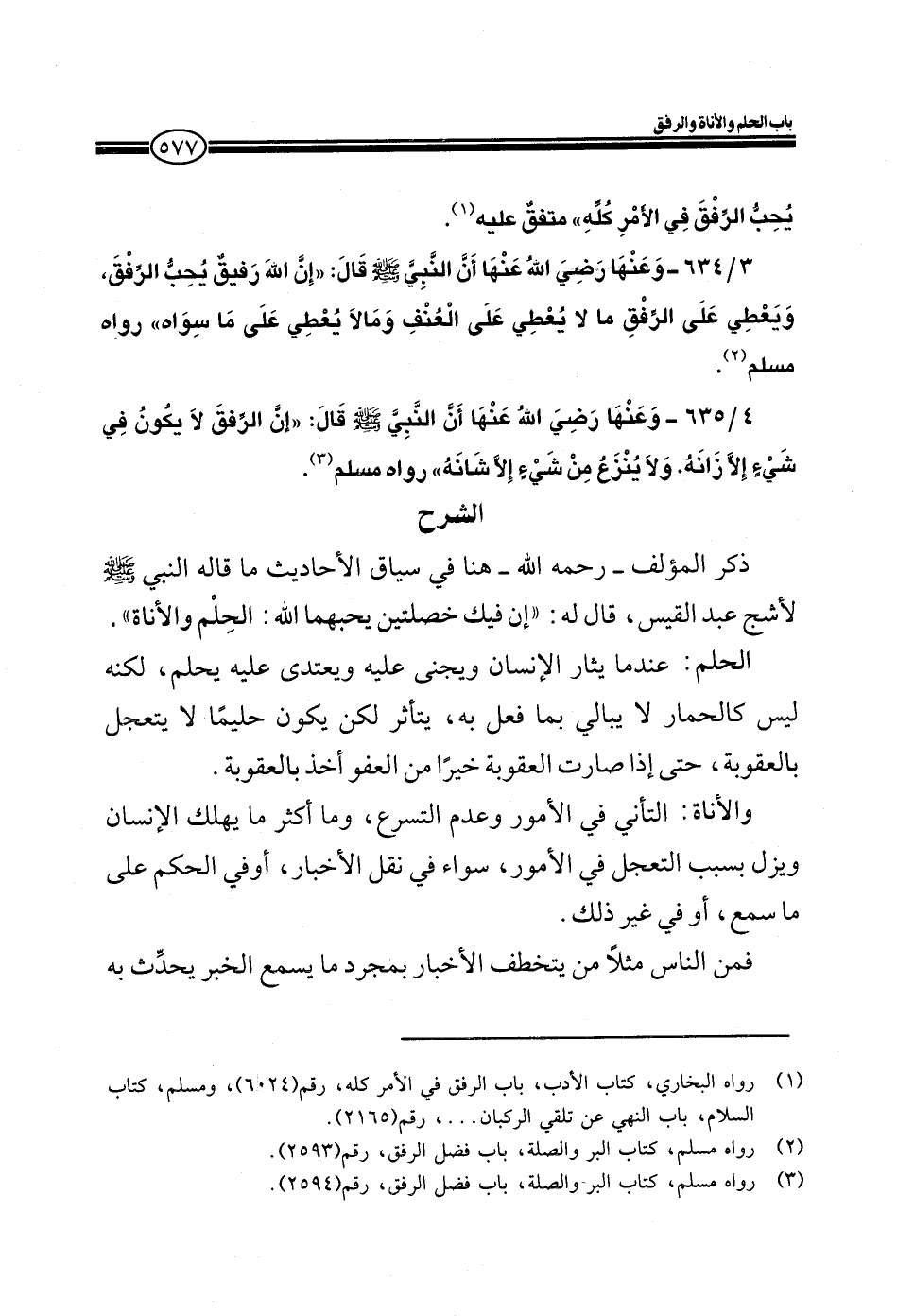 4/635- وعنها رضي الله عنها أن النبي صلى الله عليه وسلم قال: " إن الرفق لا يكون في شيء إلا زانهُ، ولا ينزعُ من شيءٍ إلا شانهُ" رواه مسلم.