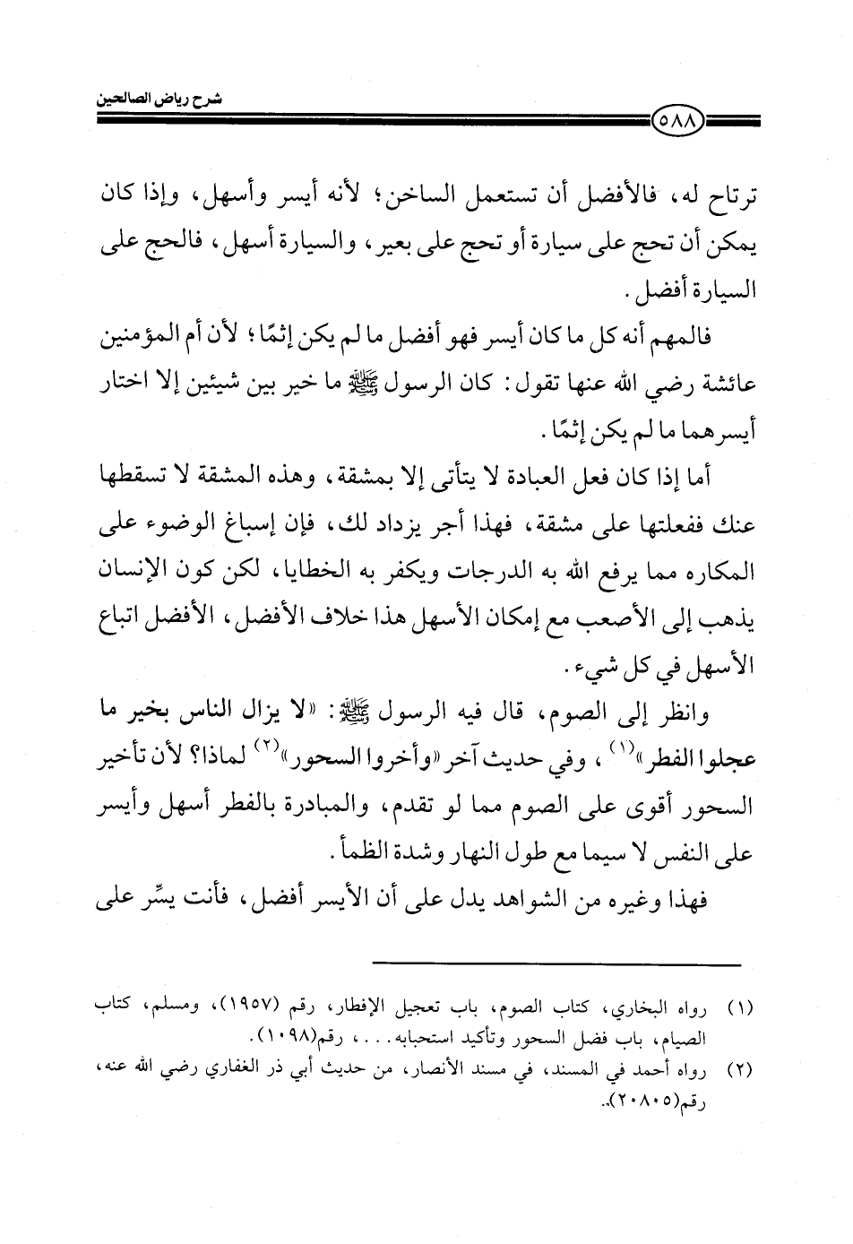 فالمهم أنه كل ما كان أيسر فهو أفضل ما لم يكن إثماً؛ لأن أم المؤمنين عائشة رضي الله عنها تقول: كان الرسول صلى الله عليه وسلم ما خير بين شيئين إلا اختار أيسرهما ما لم يكن إثماً.