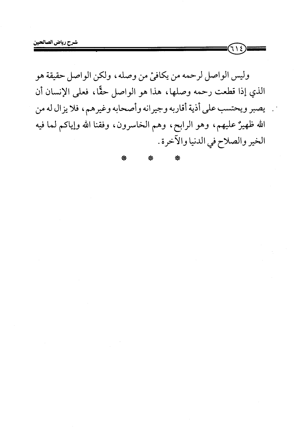 وليس الواصل لرحمه من يكافئ من وصله، ولكن الواصل حقيقة هو الذي إذا قطعت رحمه وصلها، هذا هو الواصل حقاً، فعلى الإنسان أن يصبر ويحتسب على أذية أقاربه وجيرانه وأصحابه وغيرهم، فلا يزال له من الله ظهيرٌ عليهم، وهو الرابح، وهم الخاسرون، وفقنا الله وإياكم لما فيه الخير والصلاح في الدنيا والآخرة.