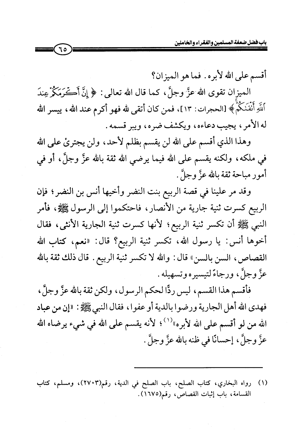 أقسم على الله لأبره. فما هو الميزان؟