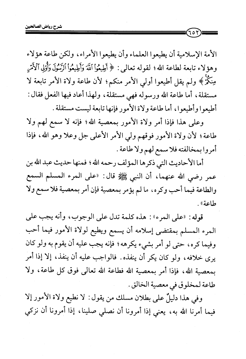 الأمة الإسلامية أن يطيعوا العلماء وأن يطيعوا الأمراء، ولكن طاعة هؤلاء وهؤلاء تابعة لطاعة الله؛ لقوله تعالى:: (يَا أَيُّهَا الَّذِينَ آمَنُوا أَطِيعُوا اللَّهَ وَأَطِيعُوا الرَّسُولَ وَأُولِي الْأَمْرِ مِنْكُمْ) ولم يقل أطيعوا أولي الأمر منكم؛ لأن طاعة ولاة الأمر تابعة لا مستقلة، أما طاعة الله ورسوله فيهي مستقلة، ولهذا أعاد فيها الفعل فقال: أطيعوا وأطيعوا، أما طاعة ولاة الأمور فإنها تابعة ليست مستقلة.