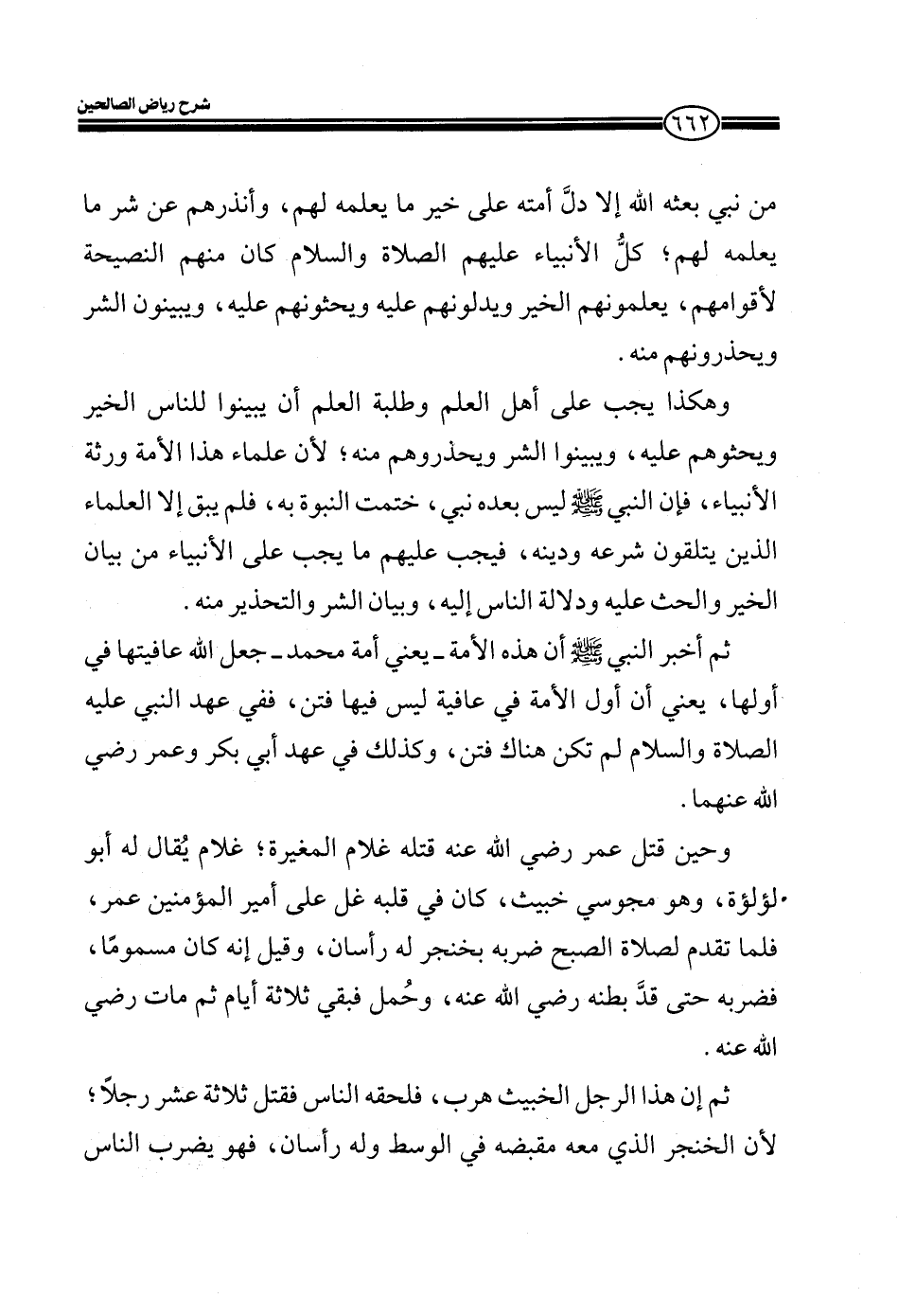 وهكذا يجب على أهل العلم وطلبة العلم أن يبينوا للناس الخير ويحثوهم عليه، ويبينوا الشر ويحذروهم منه؛ لأن علماء هذا الأمة ورثة الأنبياء، فإن النبي صلى الله عليه وسلم ليس بعده نبي، ختمت النبوة به، فلم يبق إلا العلماء الذي يتلقون شرعه ودينه، فيجب عليهم ما يحب على الأنبياء من بيان الخير والحث عليه ودلالة الناس إليه، وبيان الشر والتحذير منه.