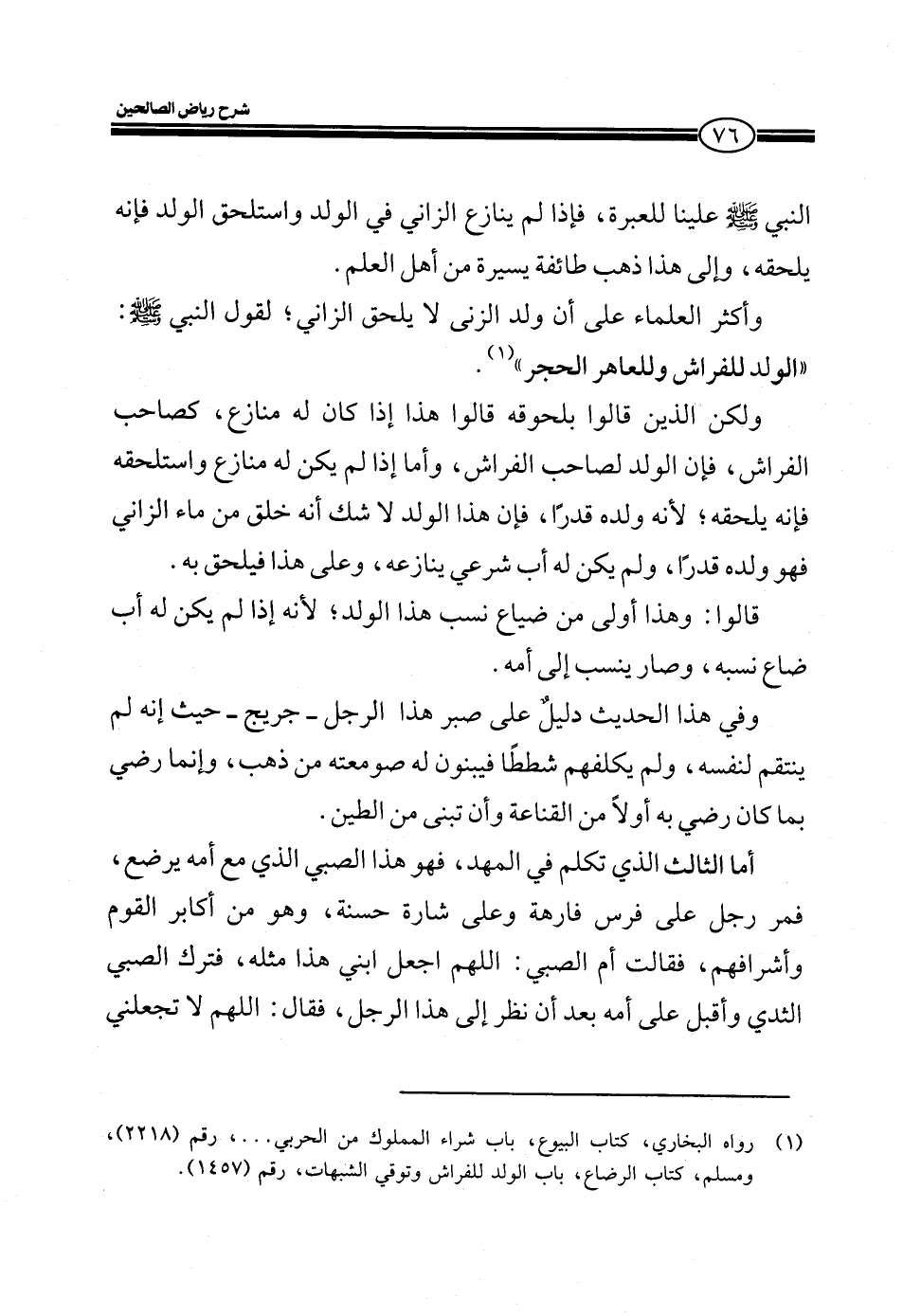 وأما الثالث الذي تكلم في المهد، فهو هذا الصبي الذي مع أمه يرضع، فمر رجل على فرس فارهة وعلى شارة حسنة، وهو من أكابر القوم وأشرافهم، فقالت أم الصبي: اللهم اجعل ابني هذا مثله، فترك الصبي الثدي وأقبل على أمه بعد أن نظر إلى هذا الرجل، فقال: اللهم لا تجعلني
