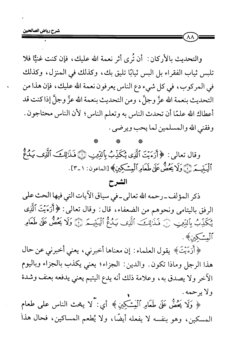 وقال تعالى (أَرَأَيْتَ الَّذِي يُكَذِّبُ بِالدِّين فَذَلِكَ الَّذِي يَدُعُّ الْيَتِيمَ وَلا يَحُضُّ عَلَى طَعَامِ الْمِسْكِينِ) [الماعون: 1ـ3]