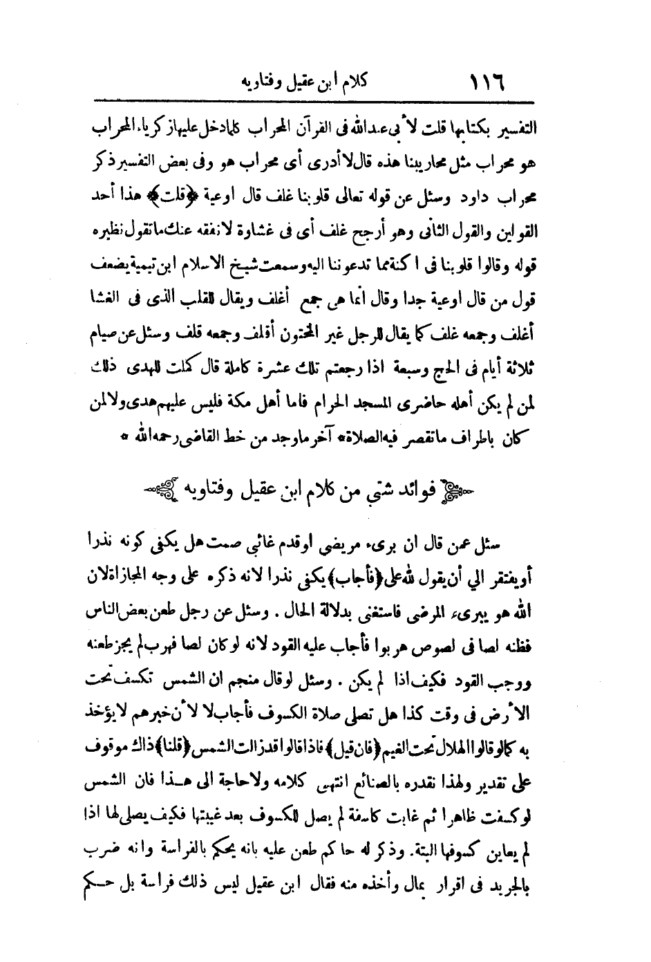 فوائد شتى من كلام ابن عقيل وفتاويه: