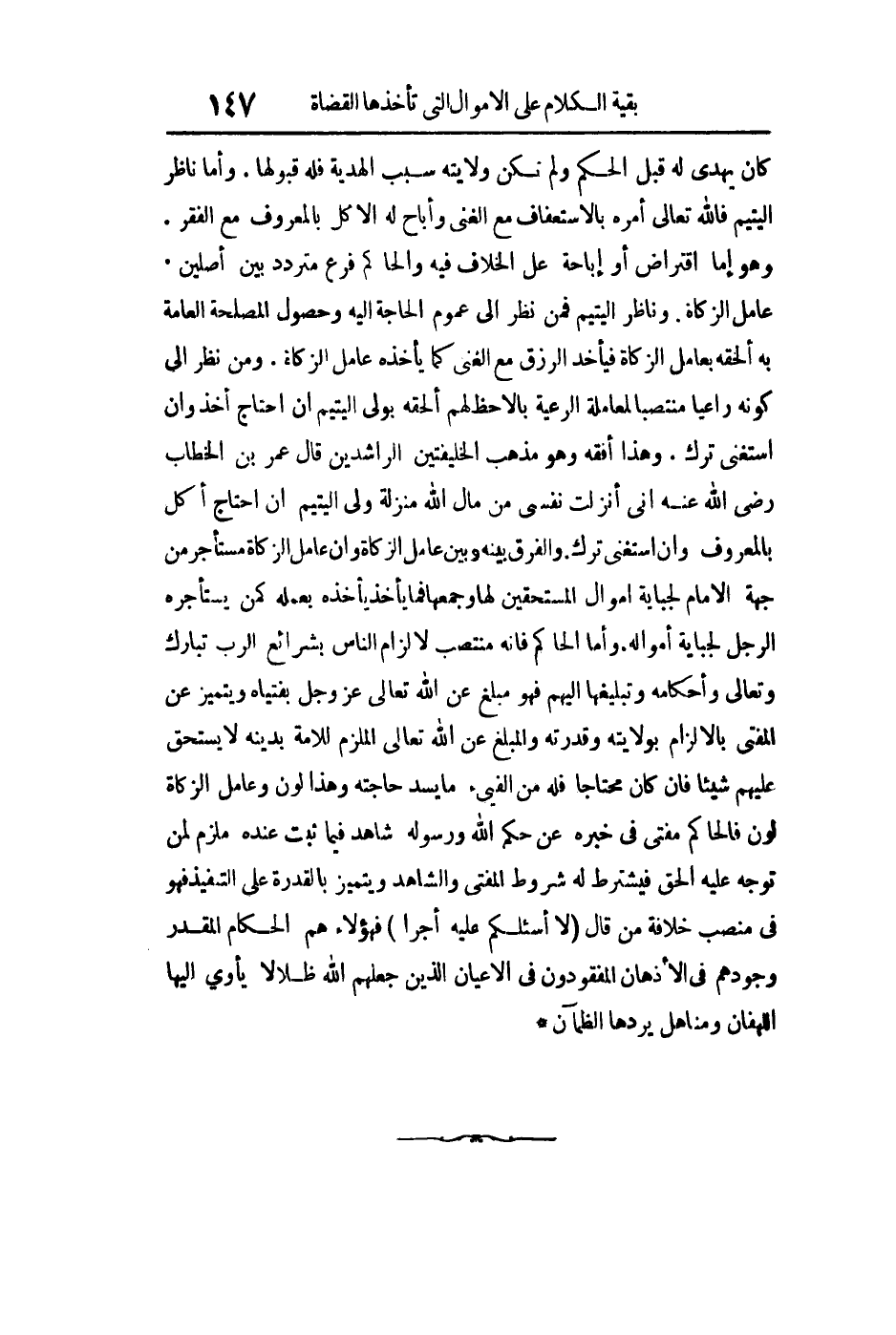كان يهدي له قبل الحكم ولم تكن ولايته سبب الهدية فله قبولها. وأما ناظر اليتيم فالله تعالى أمره بالاستعفاف مع الغنى وأباح له الأكل بالمعروف مع الفقر وهو إما اقتراض أو إباحة على الخلاف فيه والحاكم فرع متردد بين أصلين عامل الزكاة وناظر اليتيم فمن نظر إلى عموم الحاجة إليه وحصول المصلحة العامة به ألحقه بعامل الزكاة فيأخذ الرزق مع الغني كما يأخذه عامل الزكاة ومن نظر إلى كونه راعيا منتصبا لمعاملة الرعية بأن لا حظ لهم أنهم ألحقه بولي اليتيم إن احتاج أخذ وإن استغنى ترك وهذا أفقه وهو مذهب الخلفيتين الراشدين قال عمر بن الخطاب رضي الله عنه: "إني أنزلت نفسي من مال الله منزلة ولي اليتيم إن احتاج أكل بالمعروف وإن استغنى ترك" والفرق بينه وبين عامل الزكاة أن عامل الزكاة مستأجر من جهة الإمام لجباية أموال المستحقين لها وجمعها فما يأخذه يأخذه بعمله كمن يستأجره الرجل لجباية أمواله, وأما الحاكم فإنه منتصب لإلزام الناس بشرائع الرب تبارك وتعالى وأحكامه وتبليغها إليهم فهو مبلغ عن الله تعالى عز وجل بفتياه ويتميز عن المفتى بالإلزام بولايته وقدرته والمبلغ عن الله تعالى الملزم للأمة بدينة لا يستحق عليهم شيئا فإن كان محتاجا فله من الفيء ما يسد حاجته وهذا لون وعامل الزكاة لون فالحاكم مفتي في خبره عن حكم الله ورسوله شاهد فيما ثبت عنده ملزم لمن توجه عليه الحق فيشترط له شروط المفتى والشاهد ويتميز بالقدرة على التنفيذ فهو في منصب خلافة من قال: {لا أَسْأَلُكُمْ عَلَيْهِ أَجْراً} فهؤلاء هم الحكام المقدر وجودهم في الأذهان المفقودون في الأعيان الذين جعلهم الله ظلالا يأوي إليها اللهفان ومناهل يردها الظمآن.