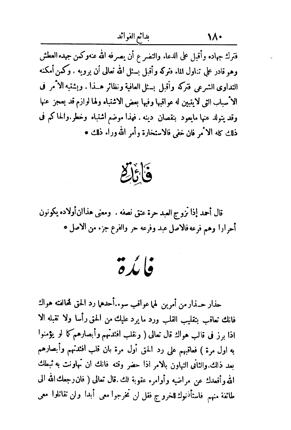 فترك جهاده وأقبل على الدعاء والتضرع أن يصرفه الله عنه وكمن جهده العطش وهو قادر على تناول الماء فتركه وأقبل يسأل الله تعالى أن يرويه وكمن أمكنه التداوي الشرعي فتركه وأقبل يسأل العافية ونظائر هذا.
