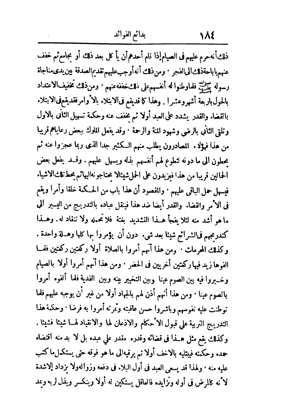 ومن هذا أنهم أمروا أولا بالصيام وخيروا فيه بين الصوم عينا وبين التخيير بينه وبين الفدية فلما ألفوه أمروا بالصوم عينا.