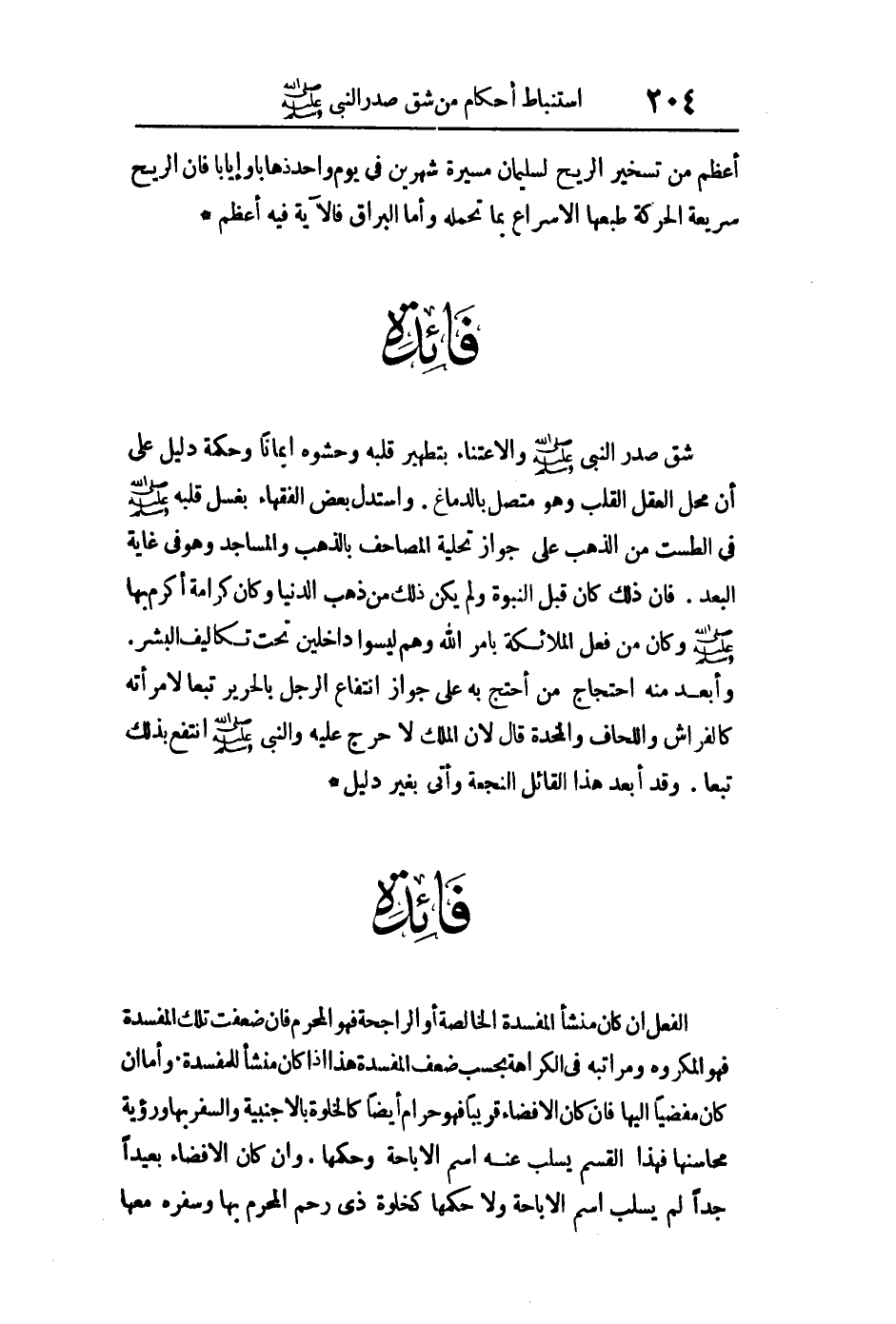 شق صدر النبي صلى الله عليه وسلم بتطهير قلبه وحشوه إيمانا وحكمة دليل على أن محل العقل القلب وهو متصل بالدماغ واستدل بعض الفقهاء بغسل قلبه الطست من الذهب على جواز تحلية المصاحف بالذهب والمساجد وهو في غايه البعد فإن ذلك كان قبل النبوة ولم يكن ذلك من ذهب الدنيا وكان كرامة أكرم بها من فعل الملائكة بأمر الله وهم ليسوا داخلين تحت تكاليف البشر.