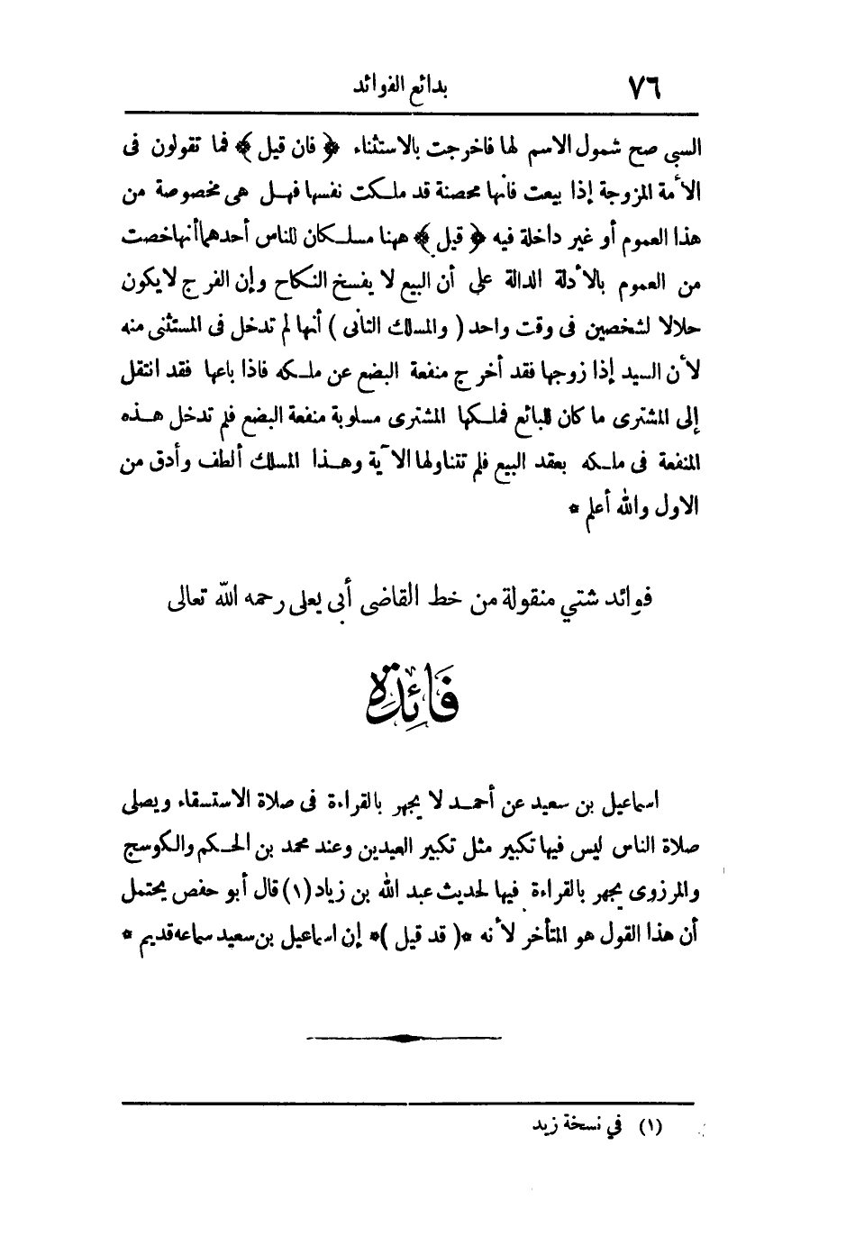 فوائد شتى منقولة من خط القاضي أبي يعلي رحمه الله تعالى.