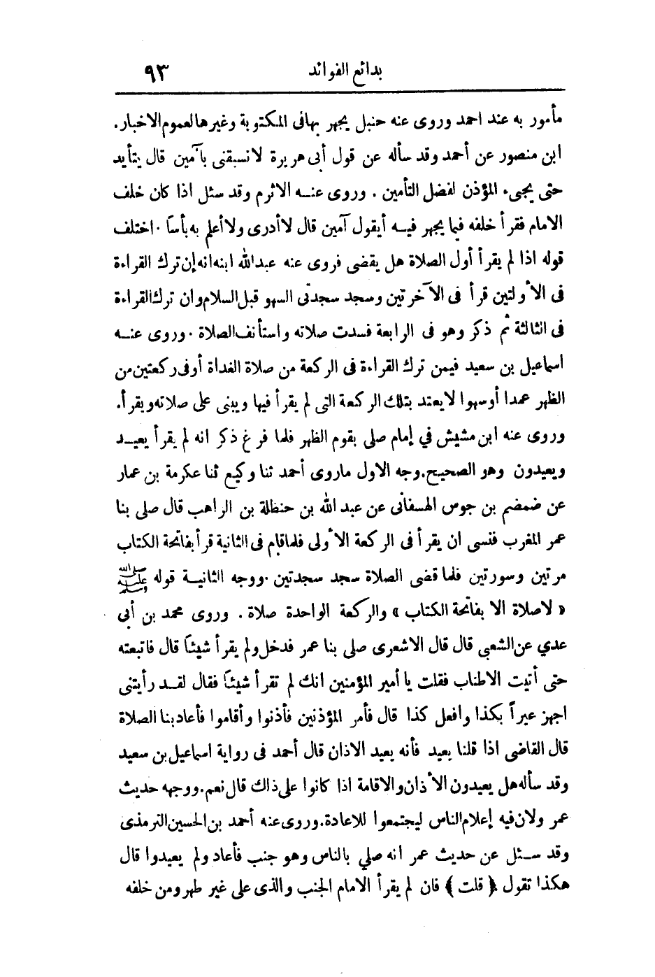 نسيان القراءة أول الصلاة: وروى عنه الأثرم وقد سئل إذا كان خلف الإمام فقرأ خلفه فيما يجهر فيه أيقول آمين؟ قال: "لا أدري ولا أعلم به بأسا"