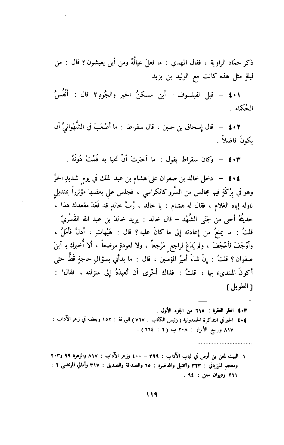 ذكر حماد الراوية، فقال المهدي: ما فعل عياله ومن أين يعيشون؟ قال: من ليلة مثل هذه كانت مع الوليد بن يزيد.