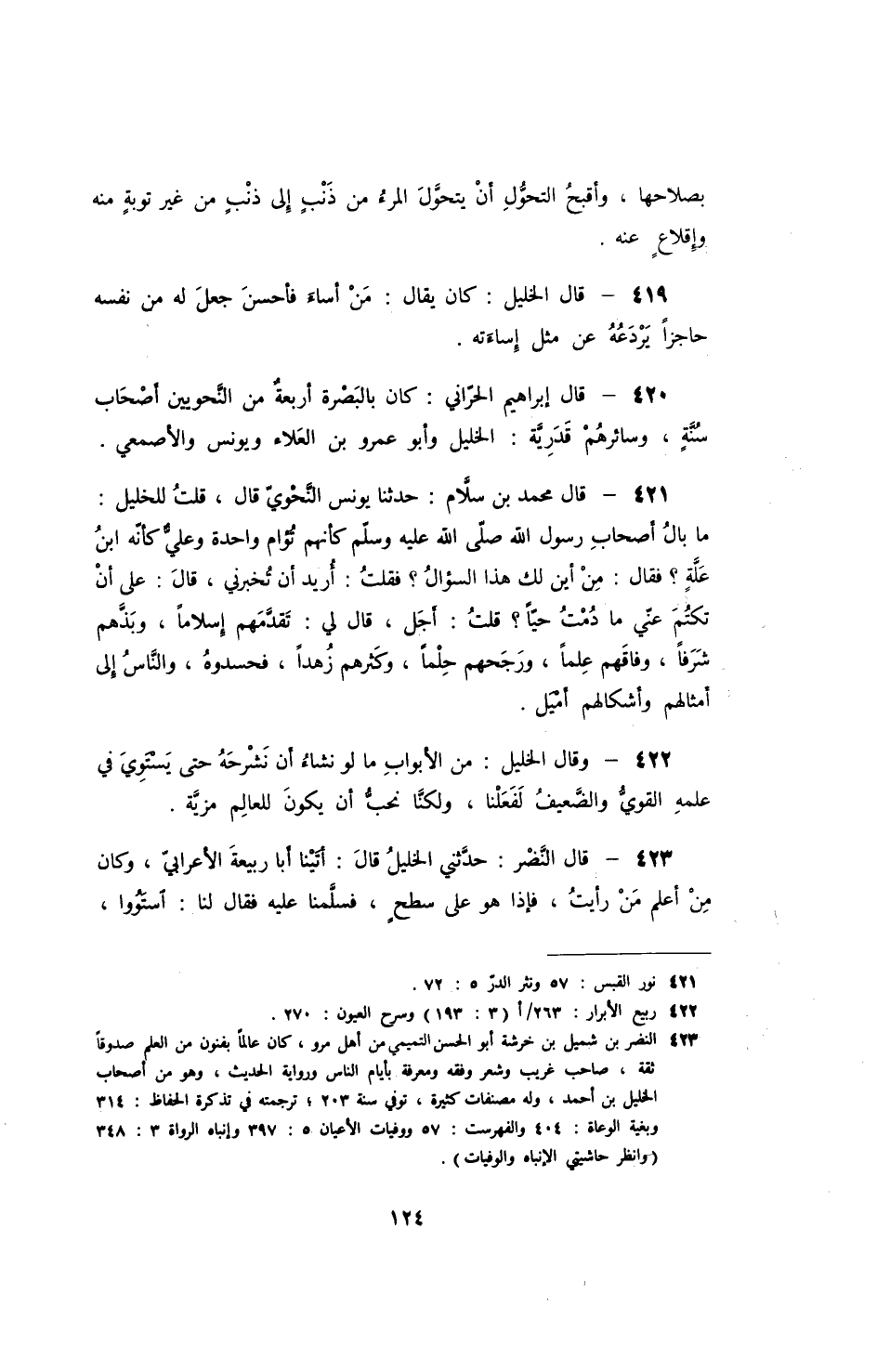 وقال الخليل: من الأبواب ما لو نشاء أن نشرحه حتى يستوي في عمله القوي والضعيف لفعلنا، ولكنا نحب أن يكون للعالم مزية.