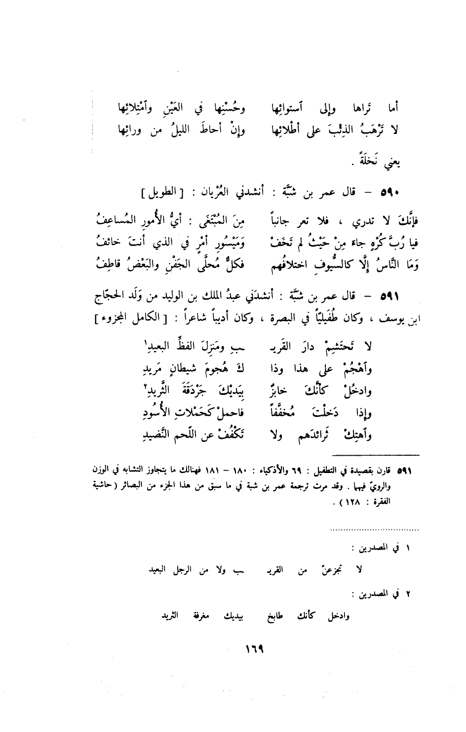 قال عمر بن شبة: أنشدني العريان: الطويل