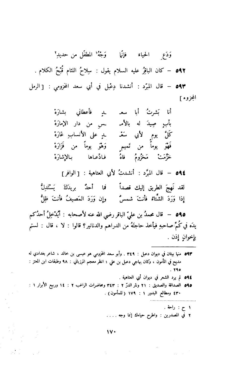 قال المبرد: أنشدت لأبي العتاهية: الوافر