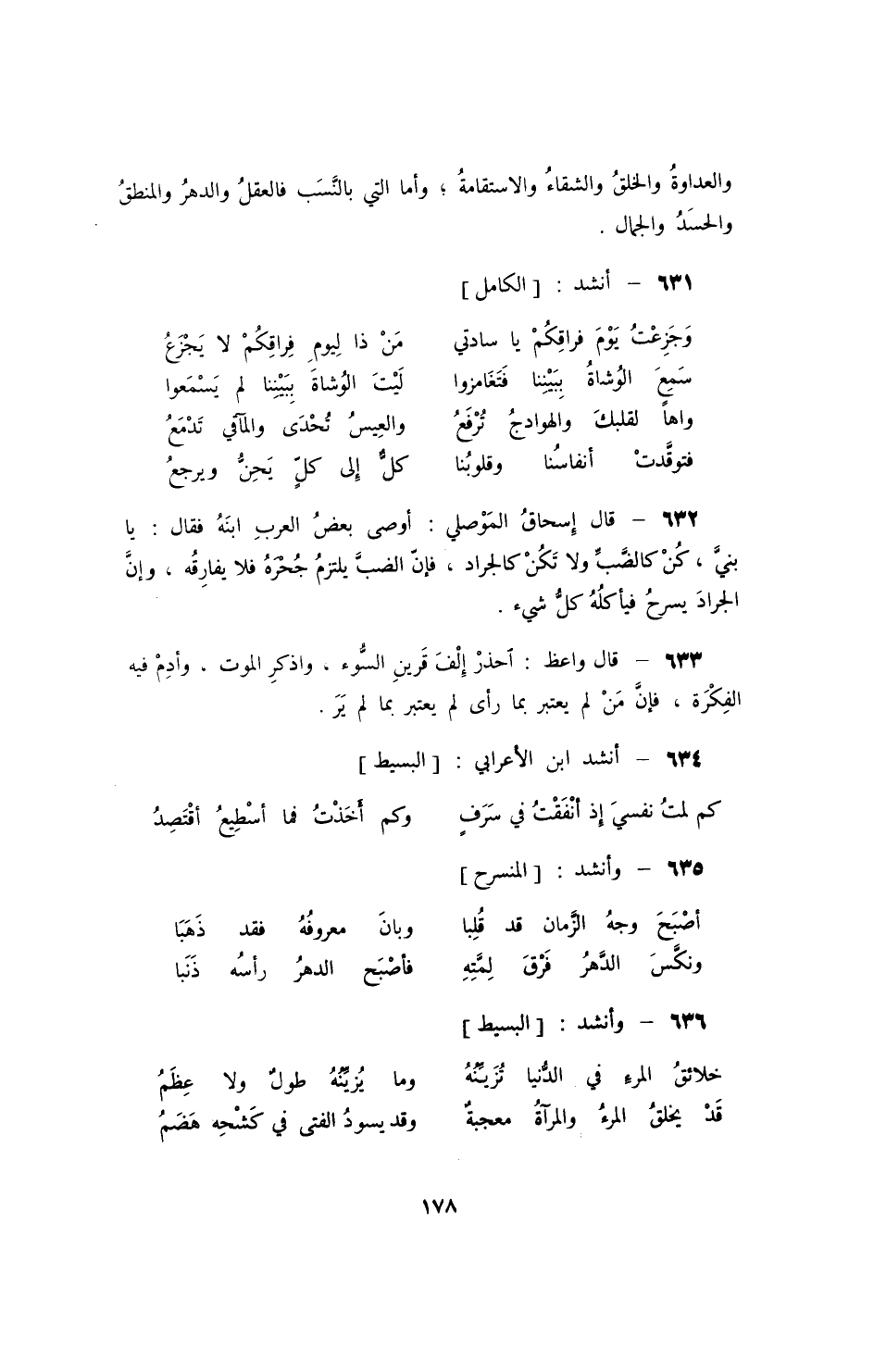 والعداوة والخلق والشقاء والاستقامة؛ وأما التي بالنسب فالعقل والدهر والمنطق والحسد والجمال.