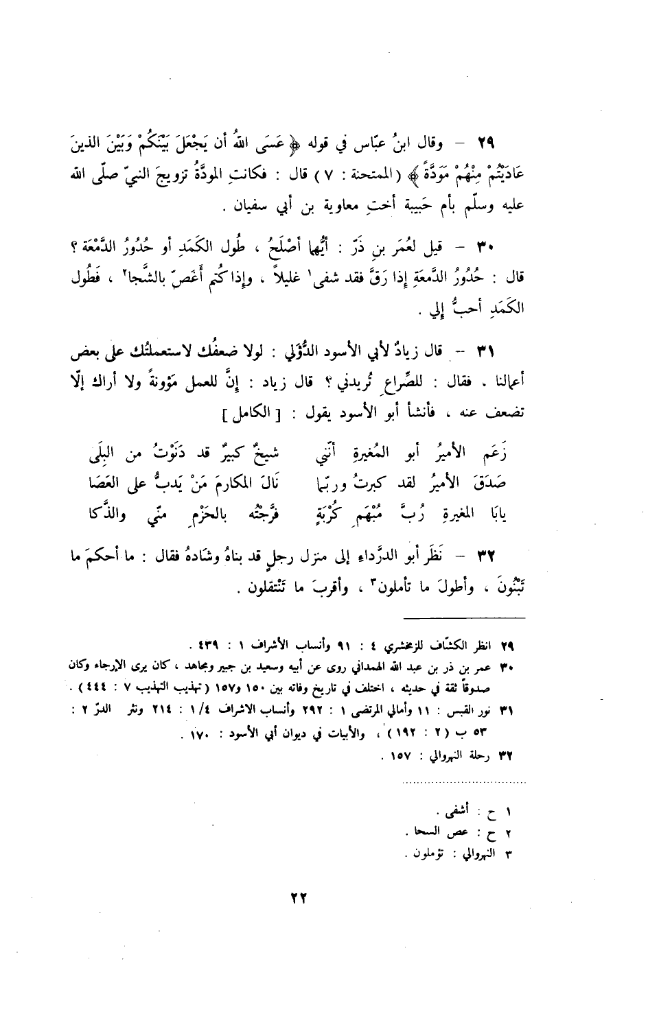 قال زياد لأبي الأسود الدولي: لولا ضعفك لاستعملتك على بعض أعمالنا، فقال: للصراع تريدني؟ قال زياد: إن للعمل مؤونة ولا أراك إلا تضعف عنه، فأنشأ أبو الأسود يقول: الكامل