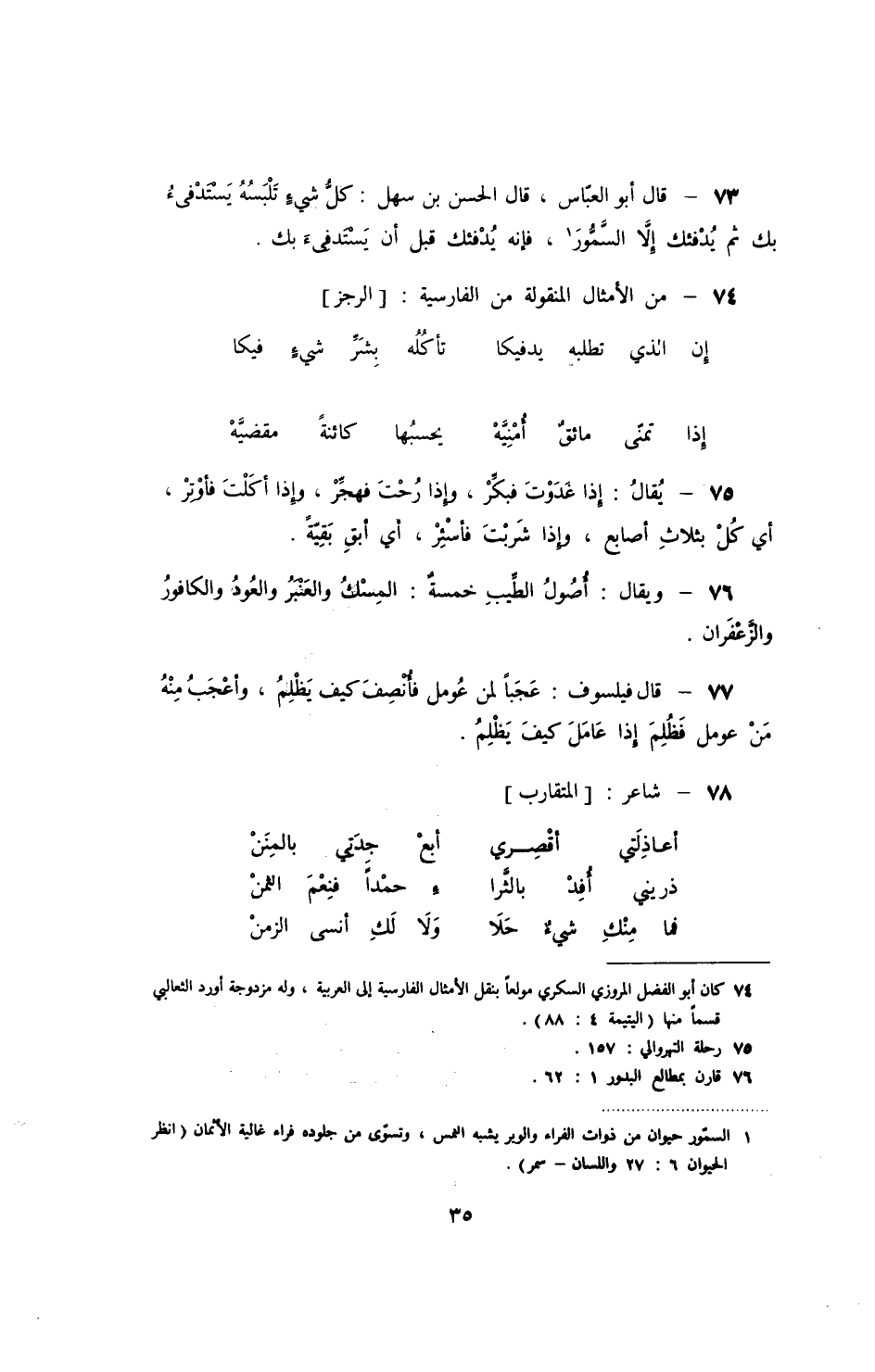 قال أبو العباس، قال الحسن بن سهل: كل شيء تلبسه يستدفىء بك ثم يدفئك إلا السمور، فإنه يدفئك قبل أن يستدفىء بك.