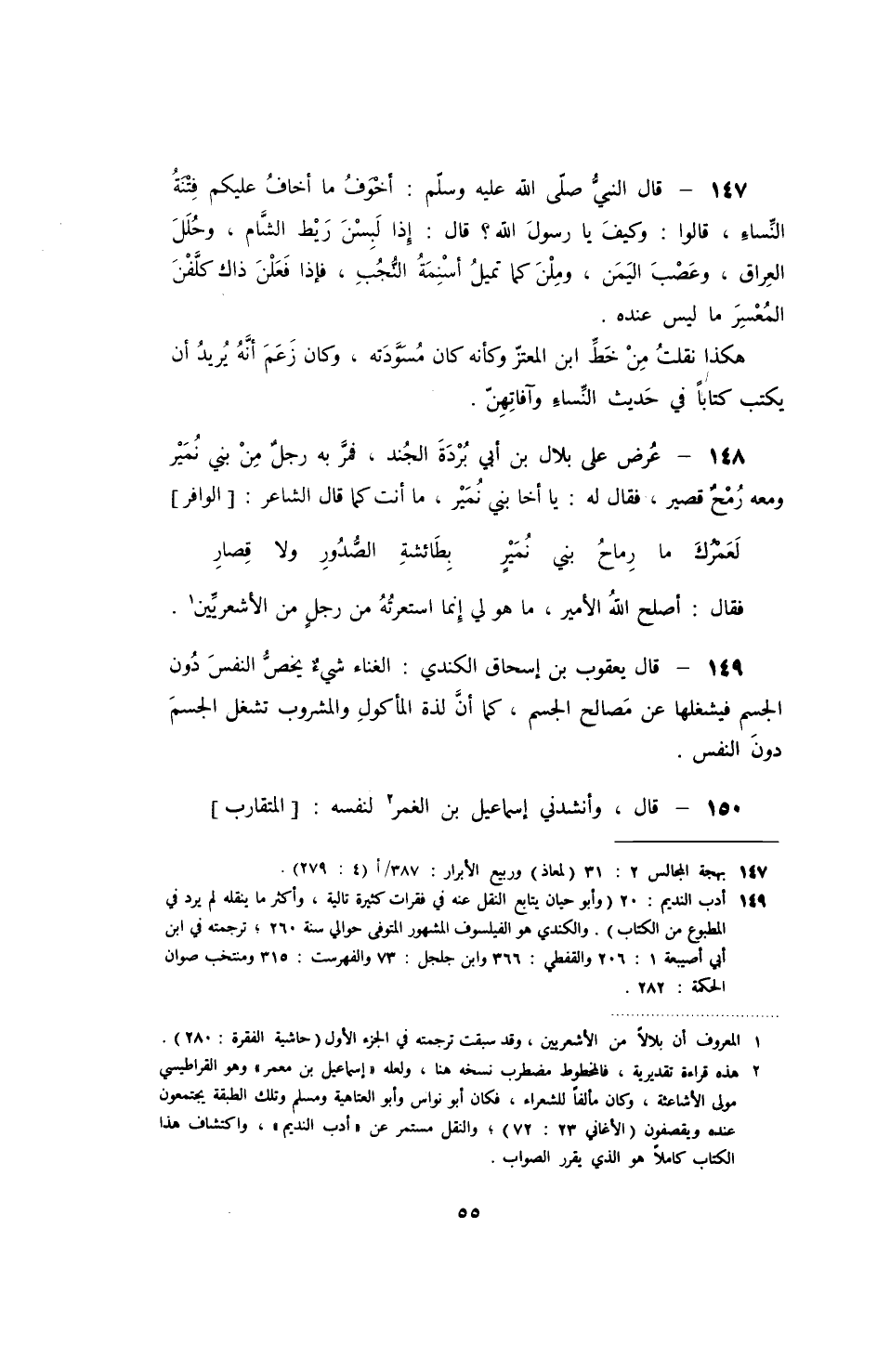 هكذا نقلت من خط ابن المعتز وكأنه كان مسودته، وكان زعم أنه يريد أن يكتب كتاباً في حديث النساء وآفاتهن.