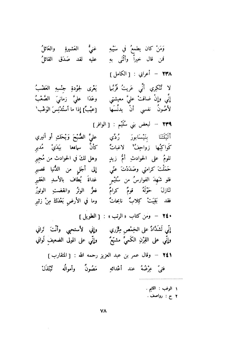 وقال عمر بن عبد العزيز رحمه الله: المتقارب