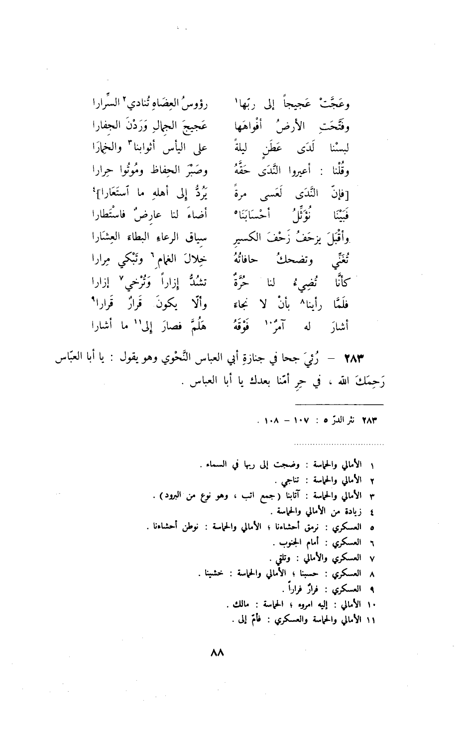 وعجب عجيجاً إلى ربها ... رؤوس العضاه تنادي السرارا