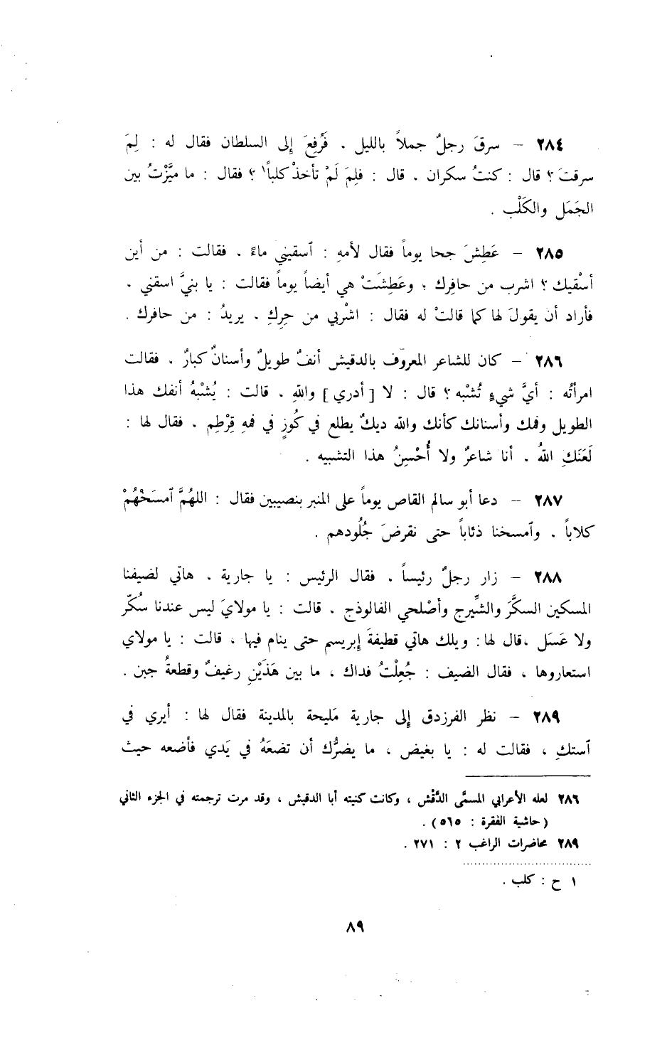نظر الفرزدق إلى جارية مليحة بالمدينة فقال لها: أيري في أستك، فقالت له: يا بغيض، ما يضرك أن تضعه في يدي فأضعه حيث