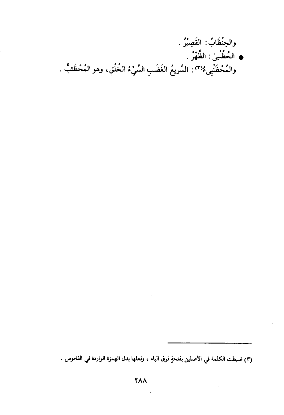 والحِنْظَابُ : القَصِيْرُ الحُظُنْبى : الظَّهْرُ . والمُحْظَنْبِيءُ : السَّريعُ الغَضَبِ السَّيِّءُ الخُلُقِ ، وهو المُحْظَئبُّ .