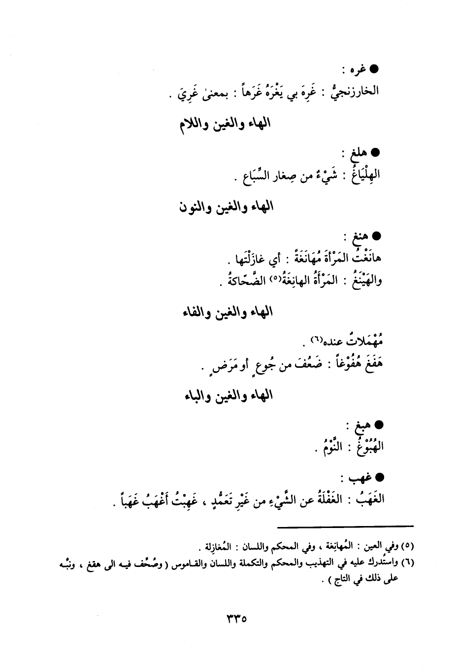 هبغ الهُبُوْغُ : النَّوْمُ . غهب الغَهَبُ : الغَفْلَةُ عن الشَّيْءِ من غَيْرِ تَعَمُّدٍ ، غَهِبْتُ أَغْهَبُ غَهَباً .