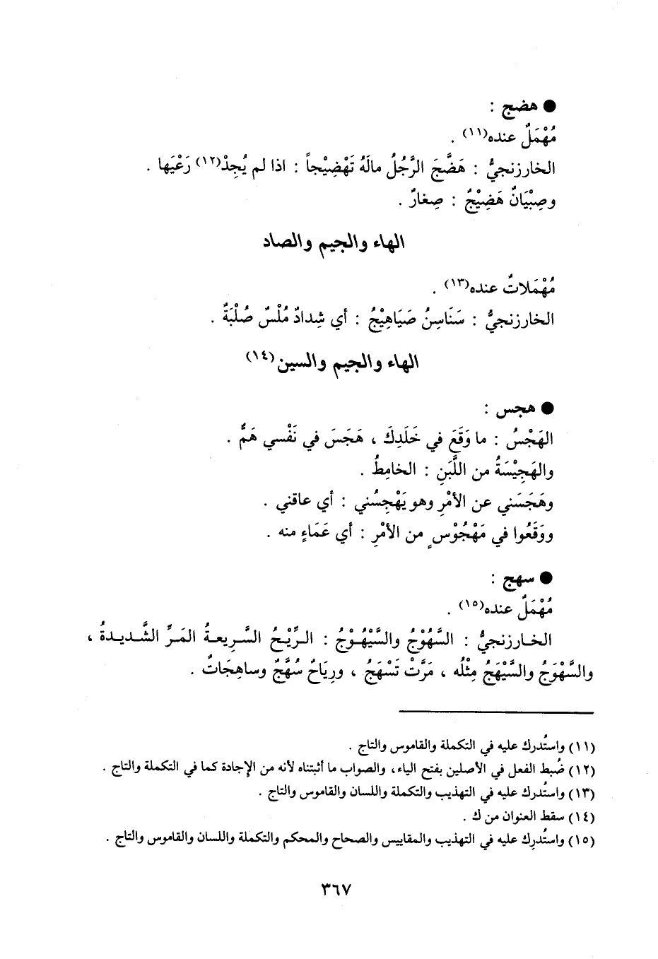 مُهْمَلاتٌ عنده . الخارزنجي : سَنَاسِنٌ صَيَاهِيْجُ : أي شِدادٌ مُلْسٌ صُلْبَةٌ .