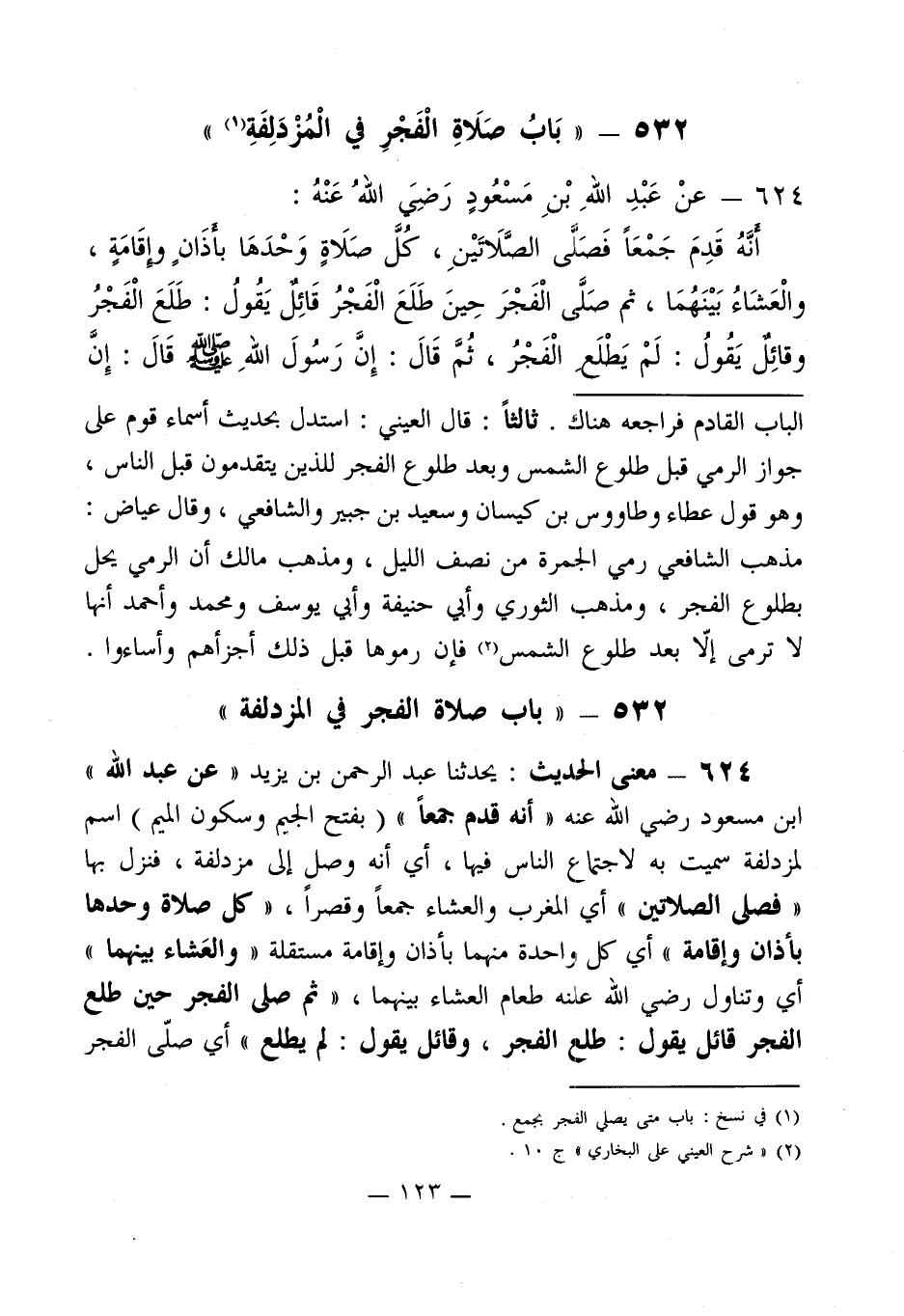 532 - " بَابُ صَلَاةِ الْفَجْرِ في الْمُزْدَلِفَةِ (¬1) "