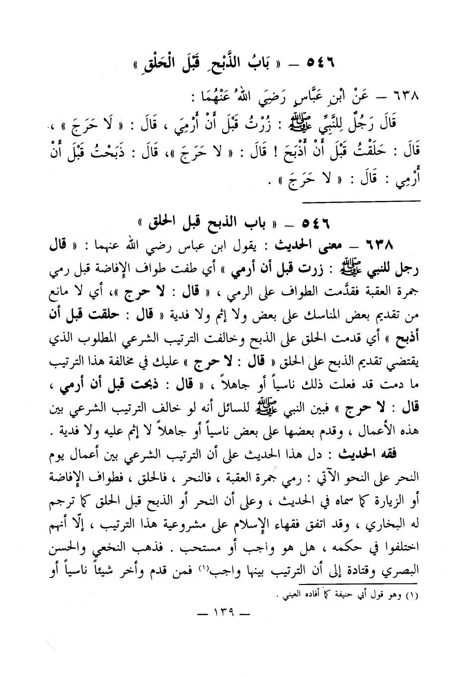 546 - " بَابُ الذَّبْحِ قَبْلَ الْحَلْقِ "
