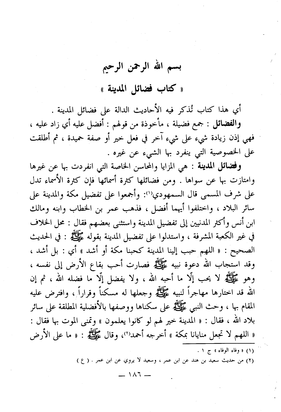 أي هذا كتاب تُذكر فيه الأحاديث الدالة على فضائل المدينة.