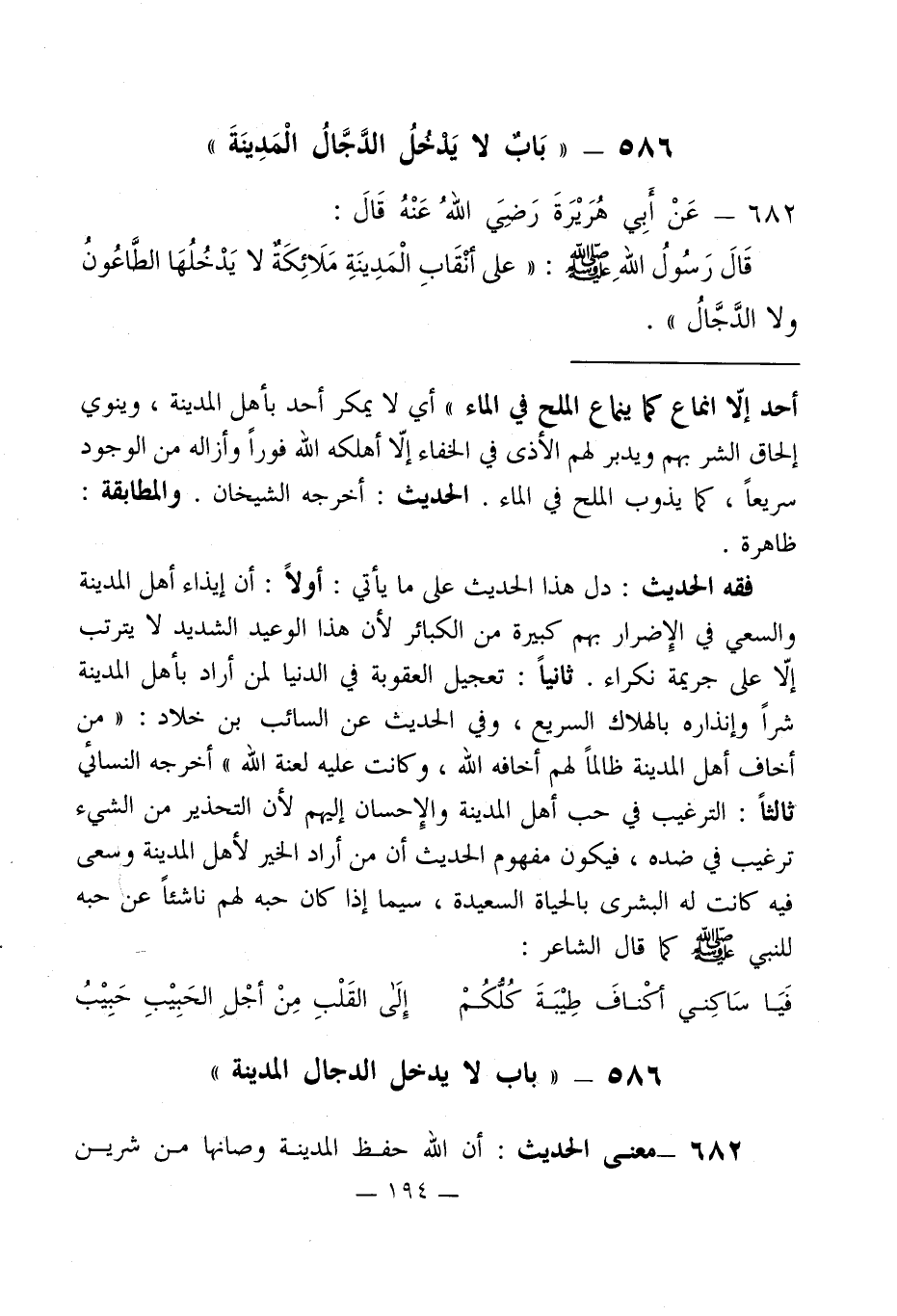 586 - " باب لا يدخل الدجال المدينة "