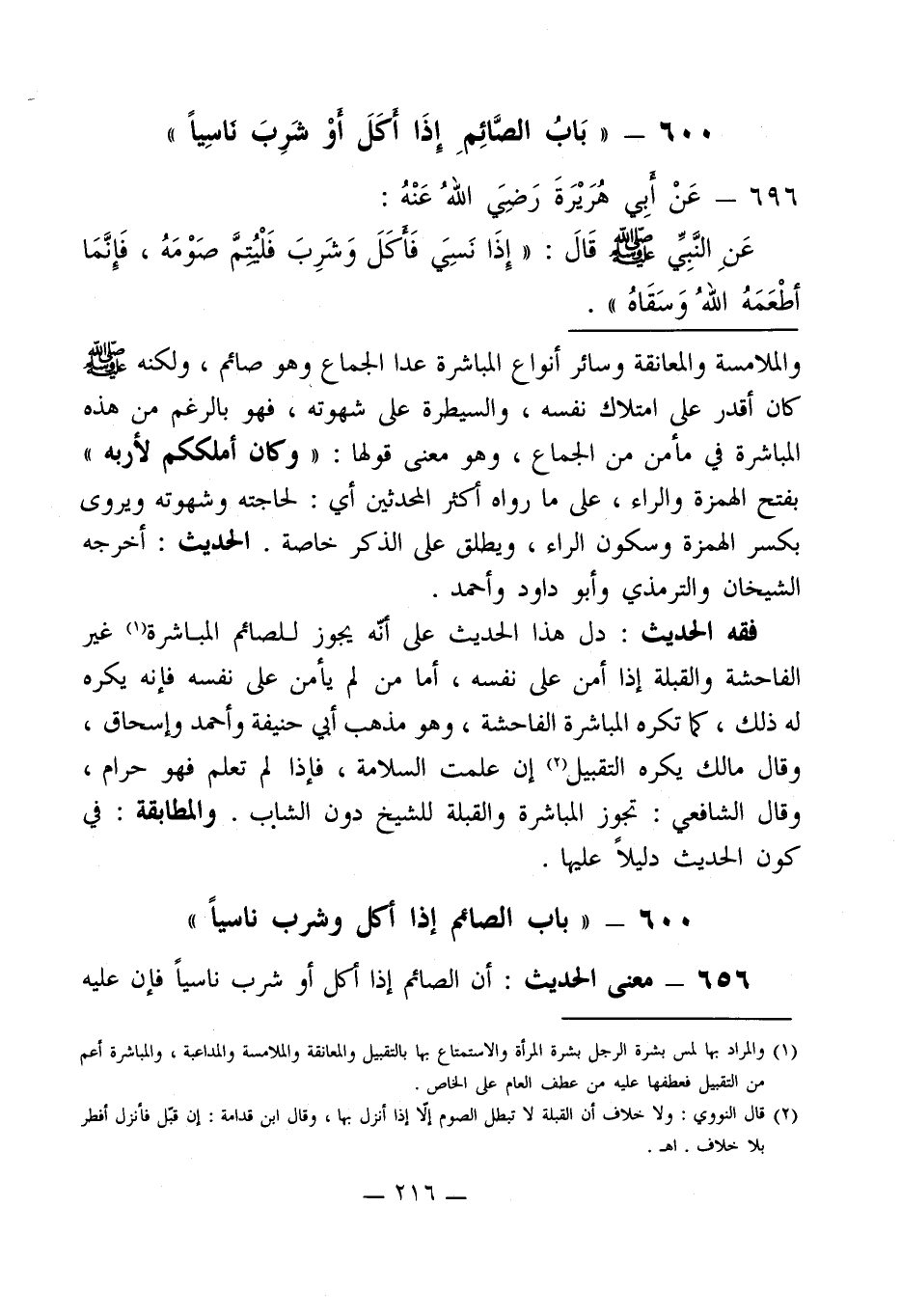 600 - " باب الصائم إذا أكل وشرب ناسياً "