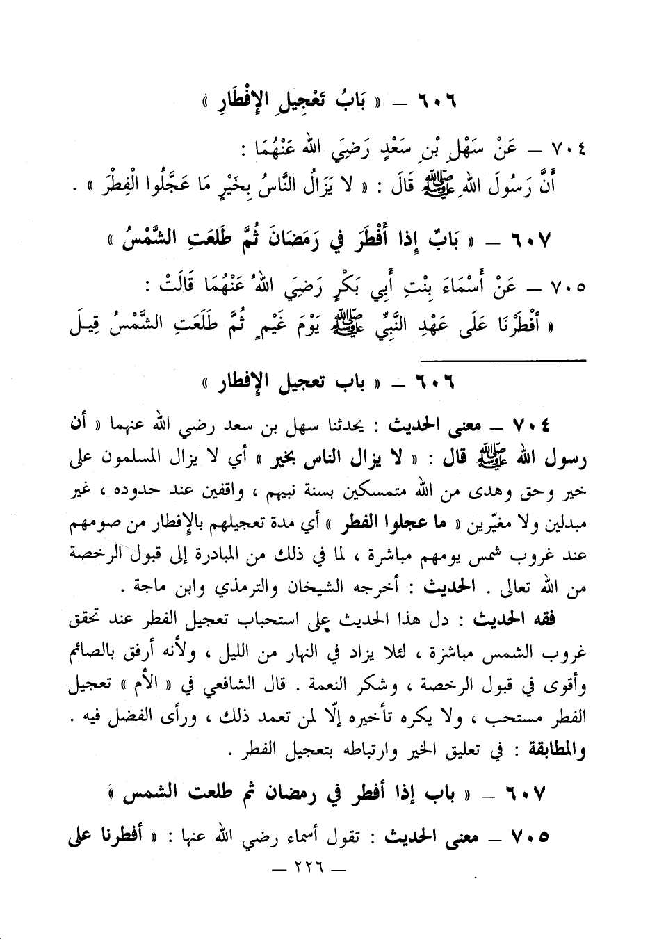 606 - " بَابُ تعْجِيلِ الإِفْطَارِ "