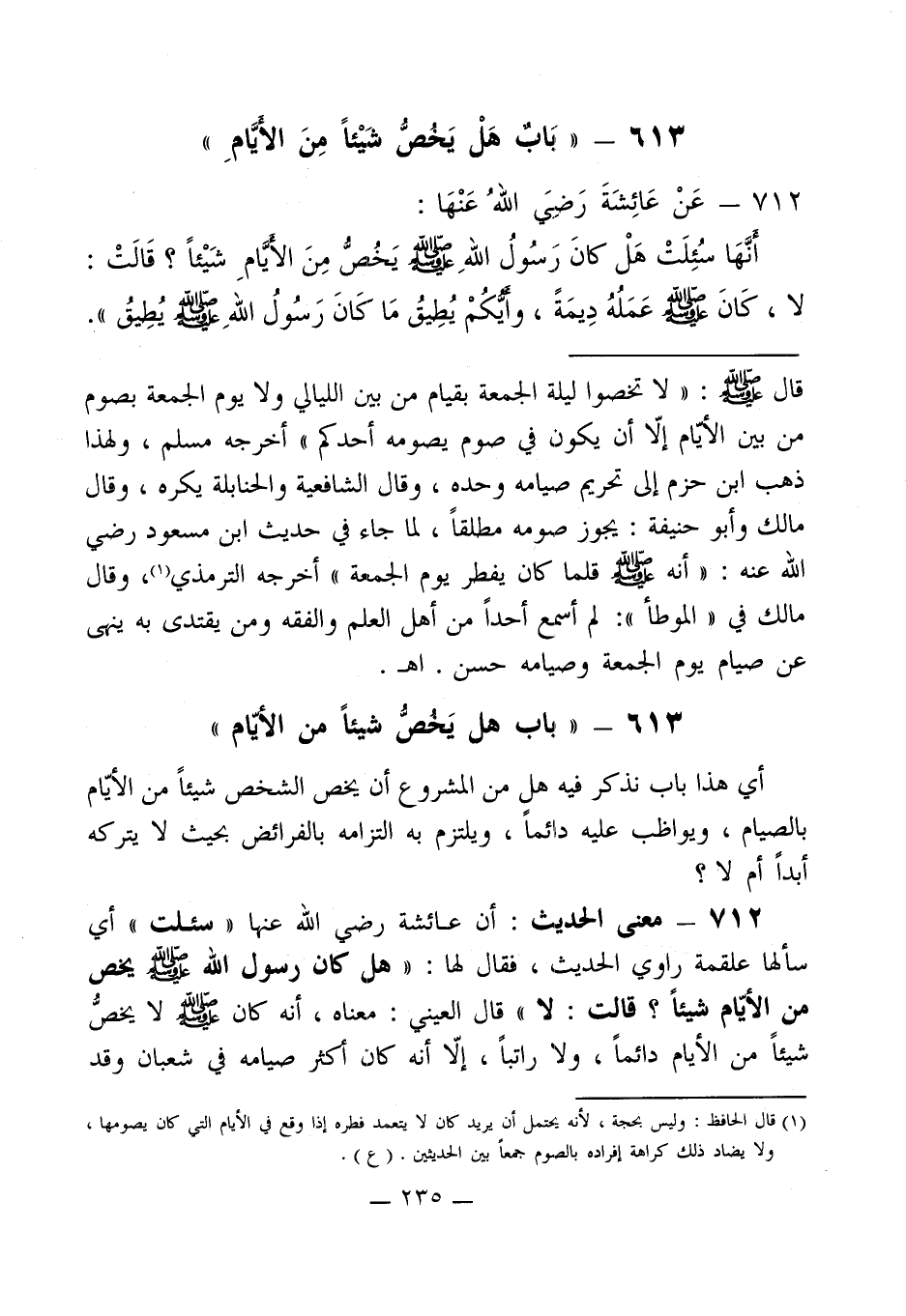 613 - " "بَابٌ هَلْ يَخُصُّ شيئاً مِنَ الأيَّامِ "