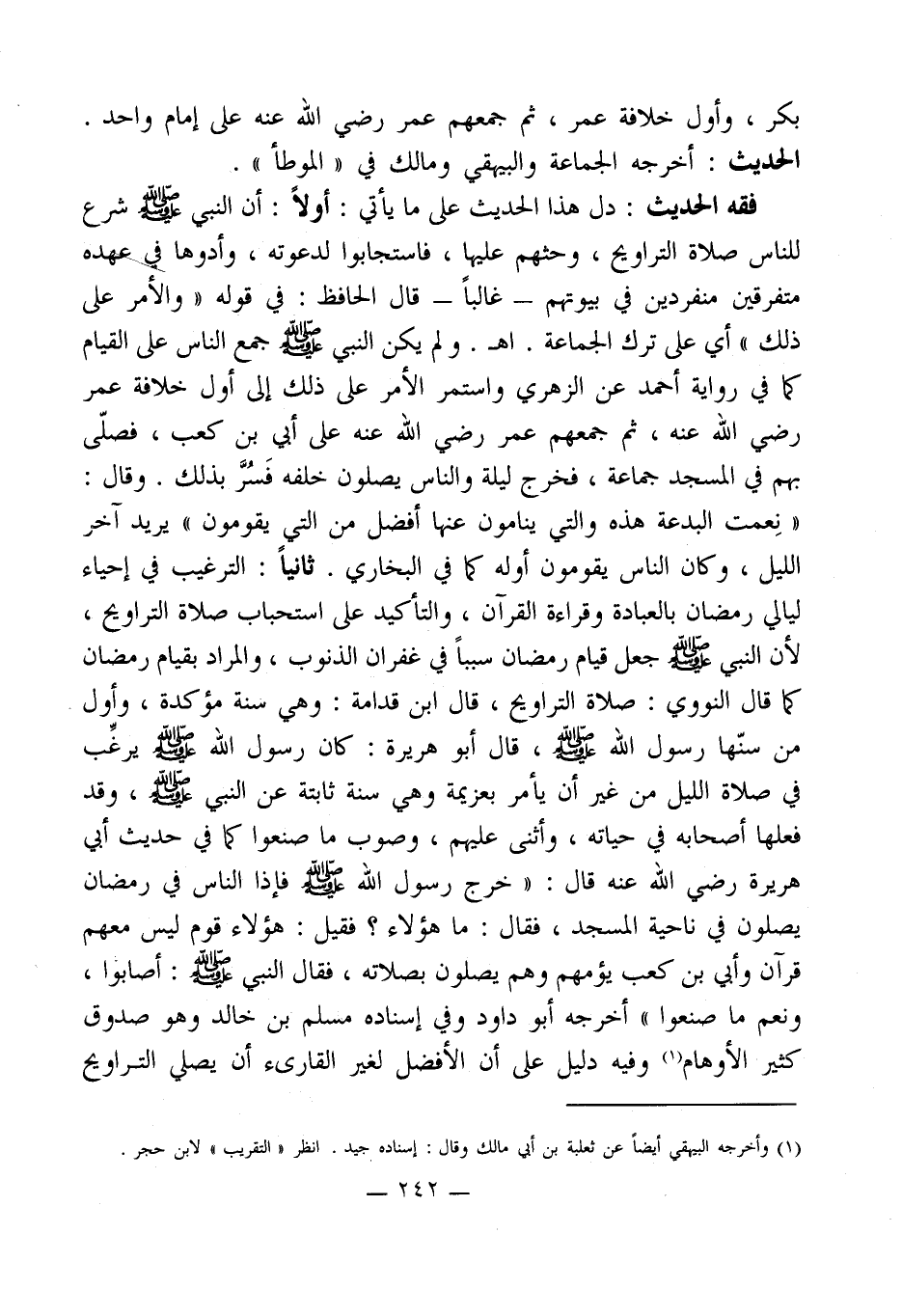 بكر، وأول خلافة عمر، ثم جمعهم عمر رضي الله عنه على إمام واحد.