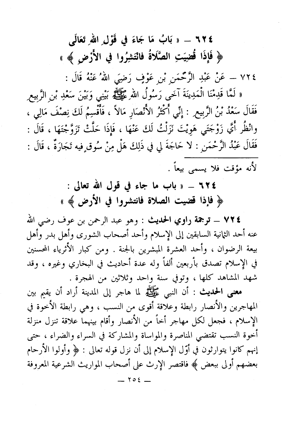 624 - " باب ما جاء في قول الله تعالى: (فَإِذَا قُضِيَتِ الصَّلَاةُ فَانْتَشِرُوا فِي الْأَرْضِ) "