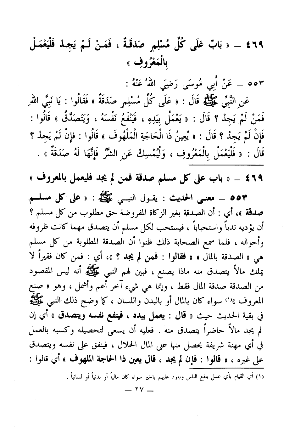 469 - "بَاب عَلَى كُلِّ مُسْلِم صَدَقَةْ، فَمَنْ لَمْ يَجِد فَلْيَعْمَلْ بِالْمَعْرُوفِ"