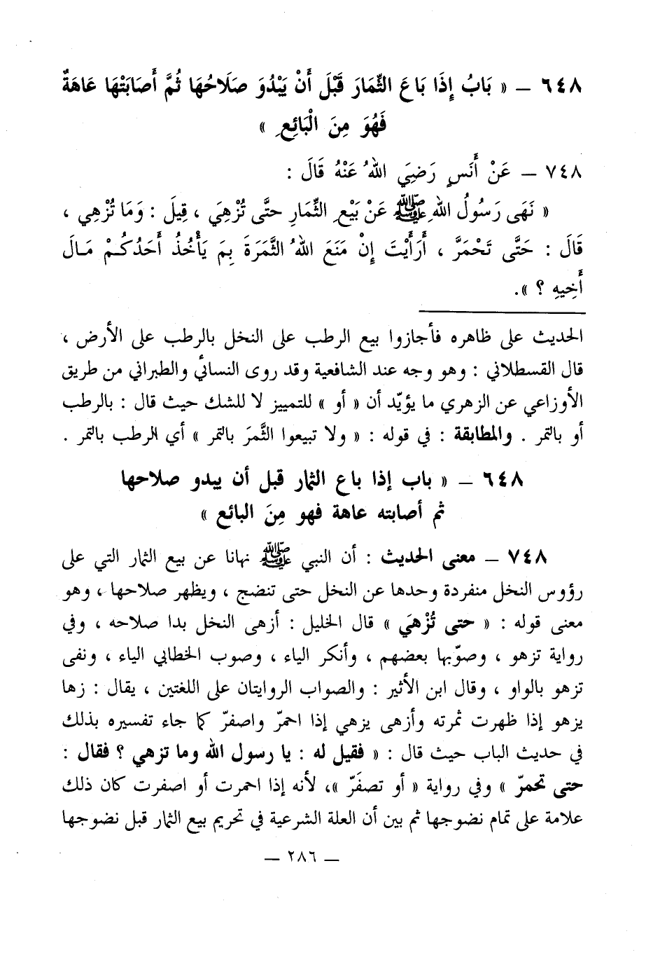 648 - " بَابُ إِذَا بَاعَ الثِّمَارَ قَبْلَ أنْ يبدُوَ صَلَاحُهَا ثُمَّ أصَابَتْهَا عَاهَةٌ فَهُوَ مِنَ الْبَائِعِ "