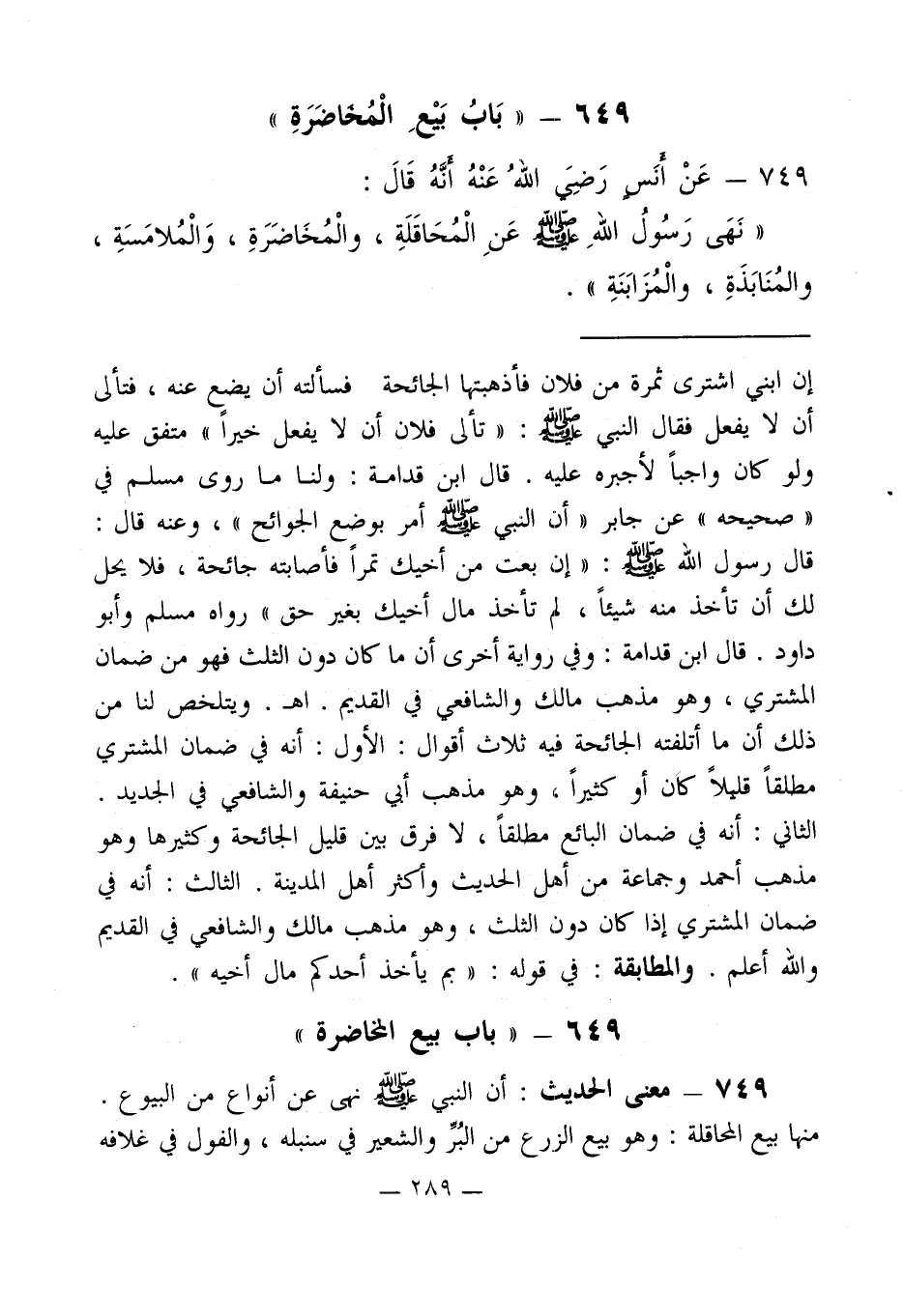 649 - " باب بيع المخاضرة "
