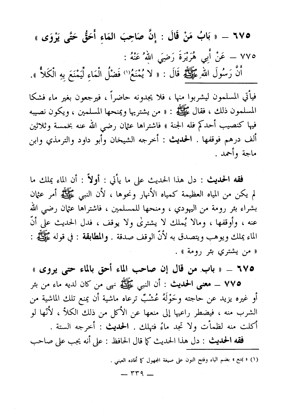 675 - " بَابُ مَنْ قَال: إِنَّ صَاحِبَ المَاءِ أحَقُّ حَتَّى يَرْوَى "
