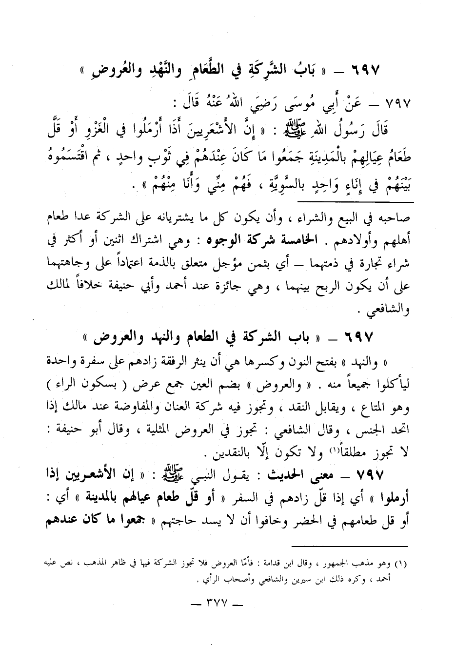 697 - " بَابُ الشَّرِكَةِ في الطَّعَامِ والنَّهْدِ والعُروضِ "