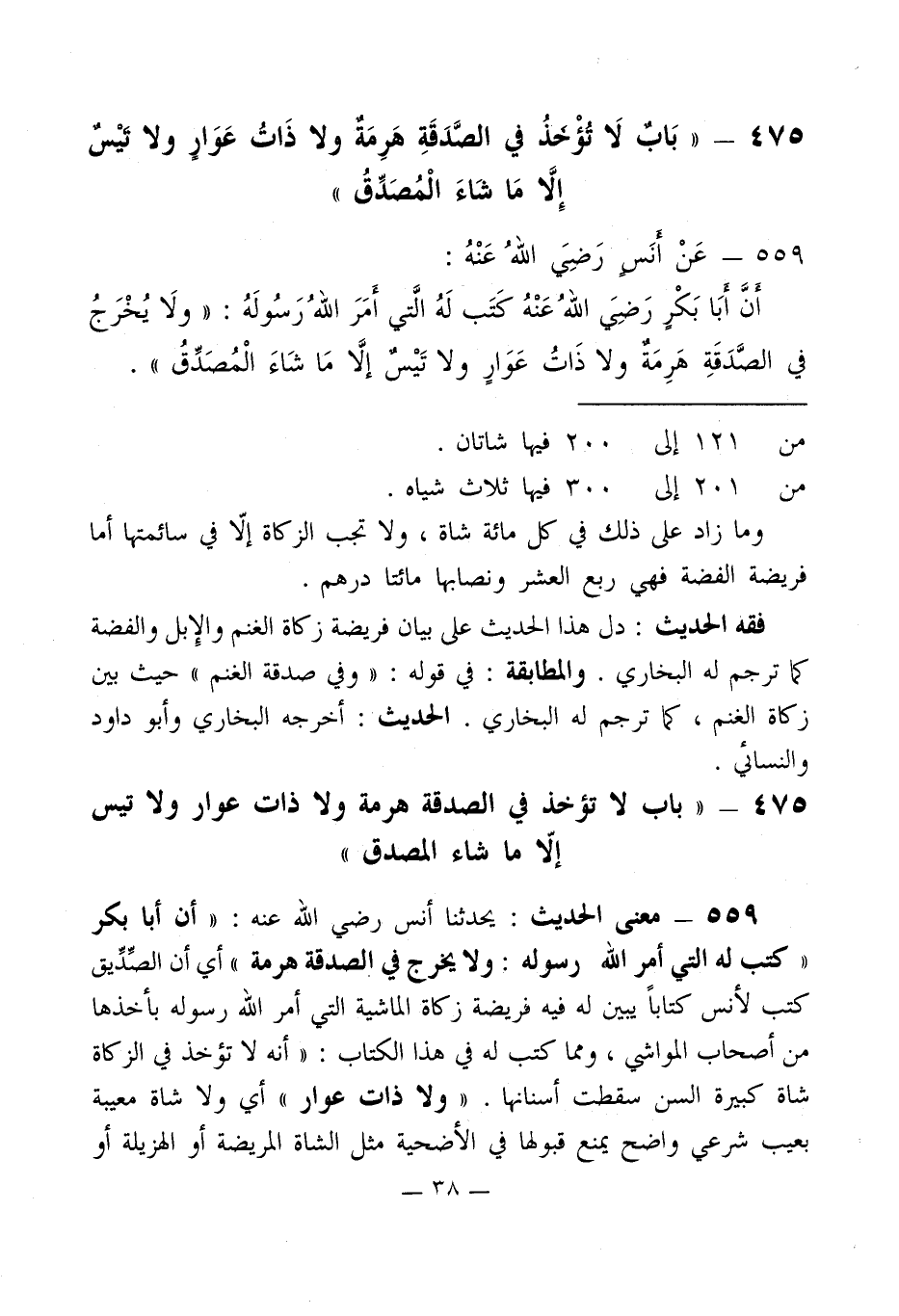 475 - " بَابٌ لَا تُؤْخذُ في الصَّدَقَةِ هَرِمَةٌ ولا ذَاتُ عَوَارٍ ولا تيْسٌ إِلَّا مَا شَاءَ الْمُصَدِّقُ "