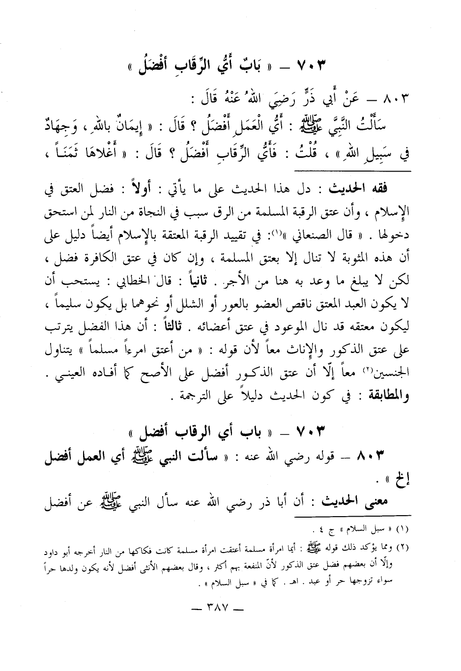 703 - " بَابٌ أيُّ الرِّقَابِ أفضَلُ "