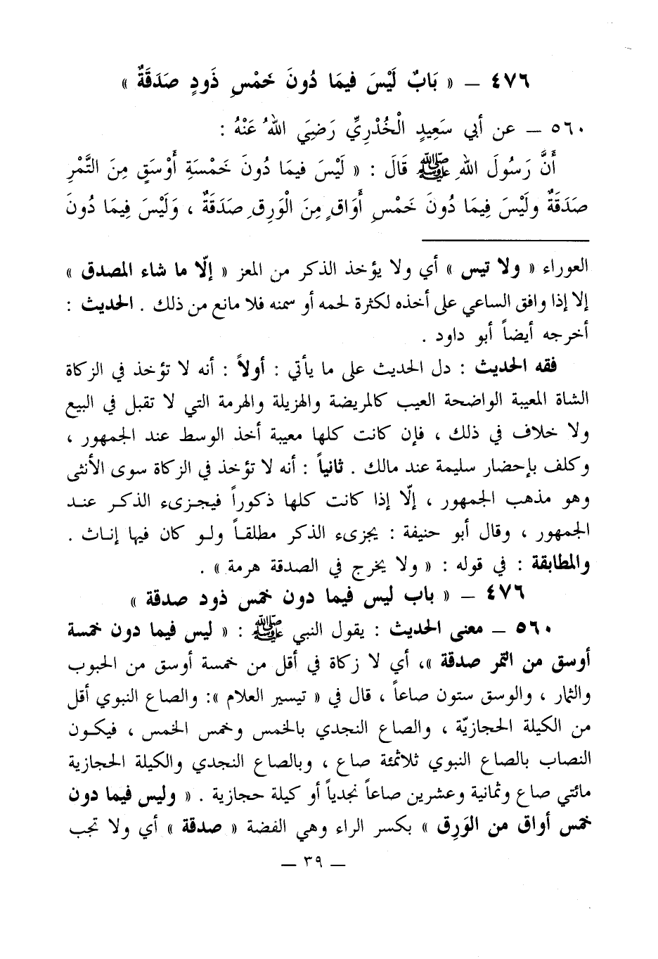 476 - " بَابٌ لَيْسَ فيمَا دُونَ خمْس ذَودٍ صَدَقَةٌ "