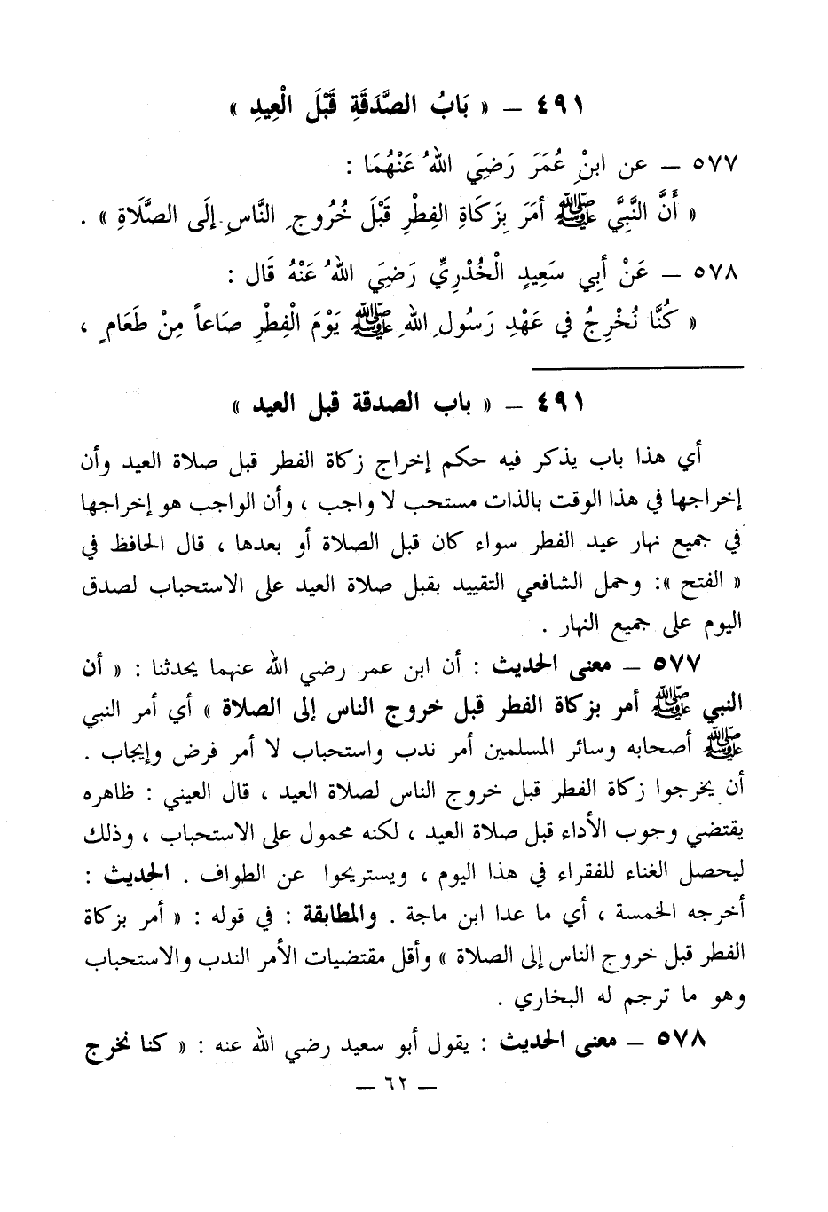491 - " بَابُ الصَّدَقَةِ قَبلَ الْعِيدِ "